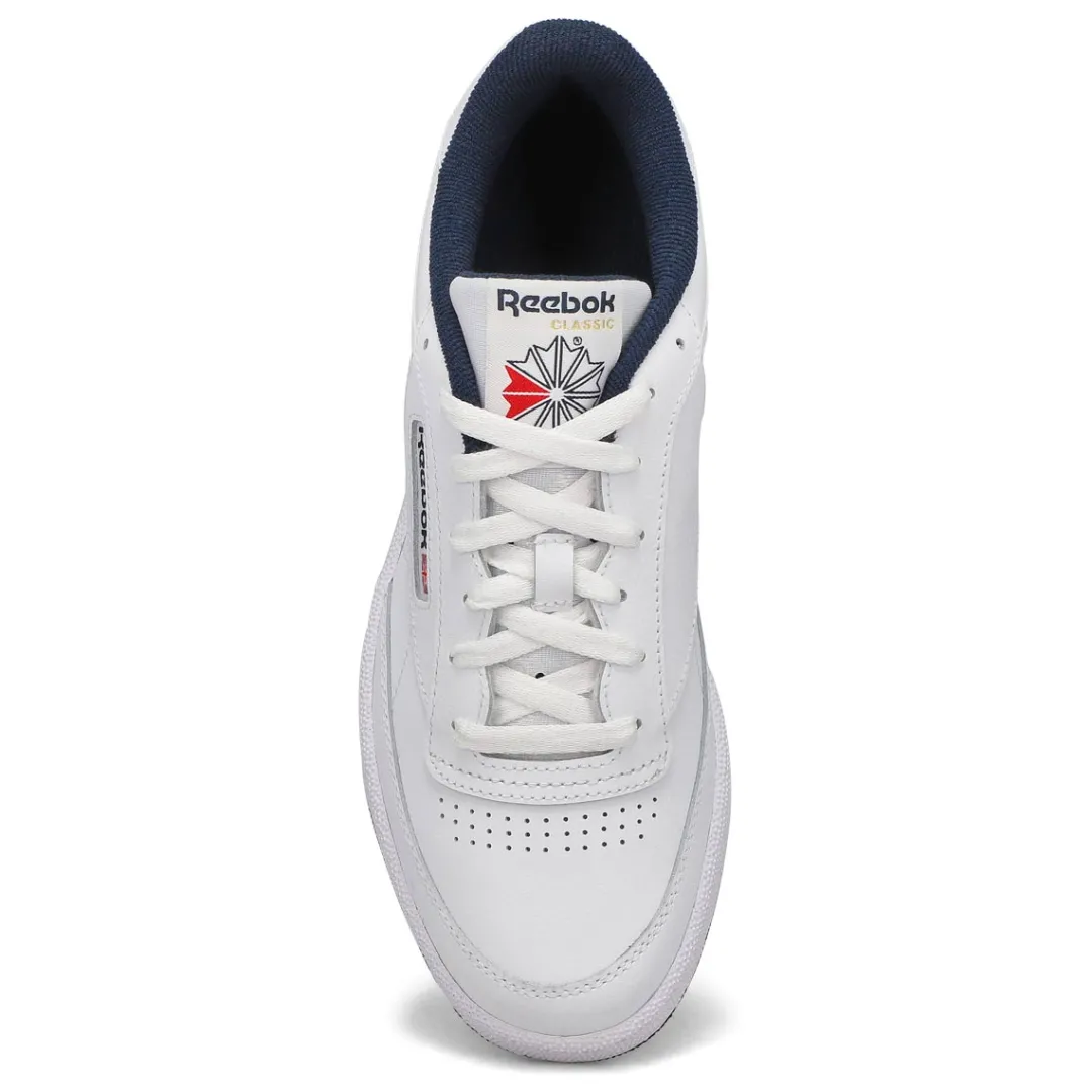 Clean, minimalist design. The Club C 85 white/green tennis-inspired shoes from Reebok keeps your look sleek and simple. Pops of subtle contrast color adds a chic touch. A Reebok logo window with a Union Jack gives them old-school style. The upper is made of soft, flexible leather. There’s nothing quite like a fresh white sneaker!
