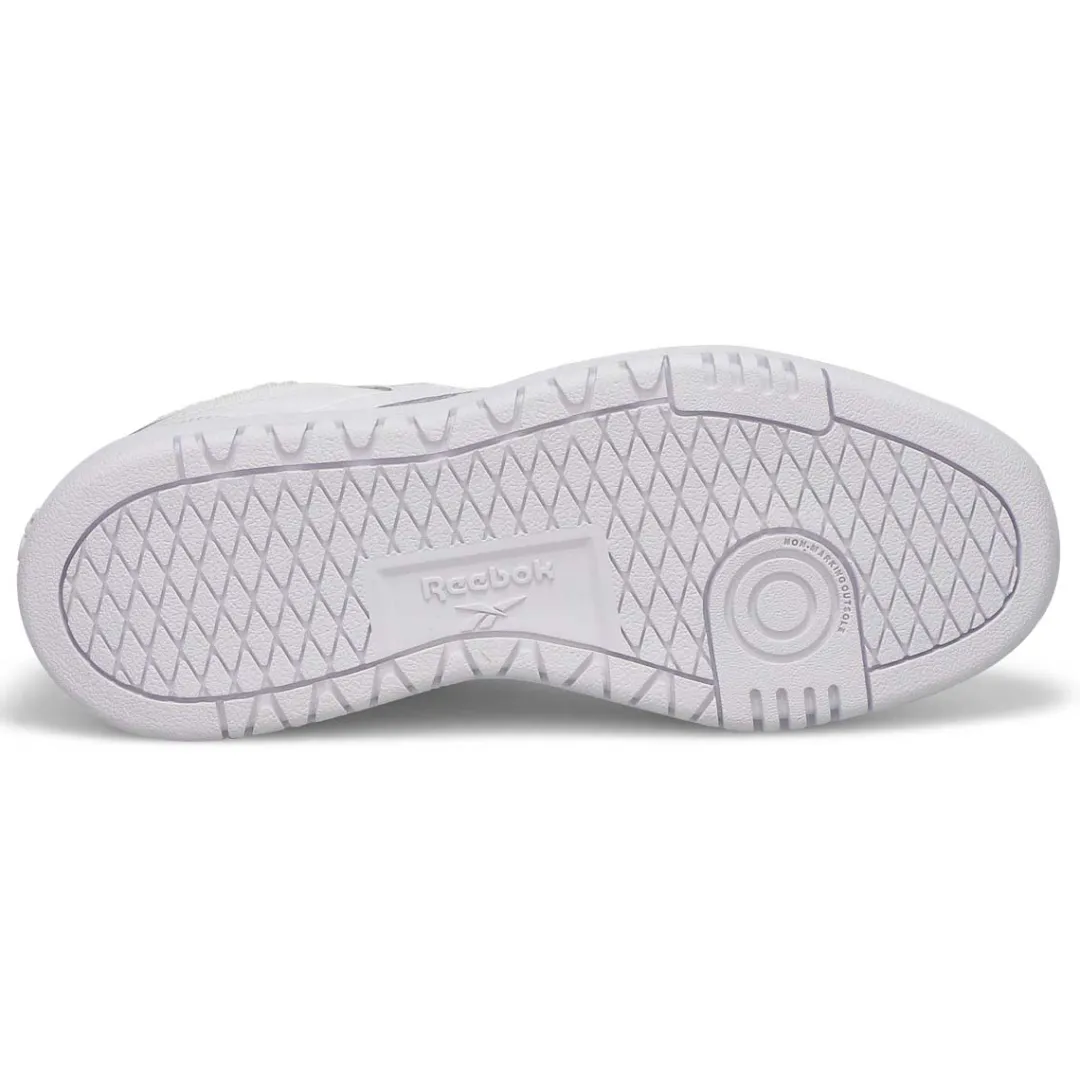 Clean, minimalist design. The Club C Double Chalk/Chalk/Essential Blue tennis-inspired shoes from Reebok keeps your look sleek and simple. Pops of subtle contrast color adds a chic touch. A Reebok logo window with a Union Jack gives them old-school style. The upper is made of soft, flexible leather. Stacked midsole for extra height and a chunky profile. There’s nothing quite like a fresh white sneaker!