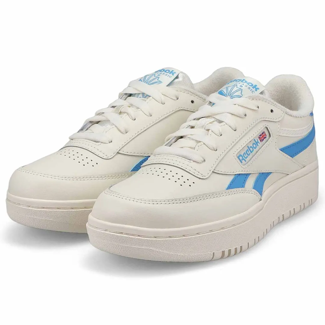 Clean, minimalist design. The Club C Double tennis-inspired shoes from Reebok keeps your look sleek and simple. Pops of subtle contrast color adds a chic touch. A Reebok logo window with a Union Jack gives them old-school style. The upper is made of soft, flexible leather. Stacked midsole for extra height and a chunky profile. There’s nothing quite like a fresh white sneaker!