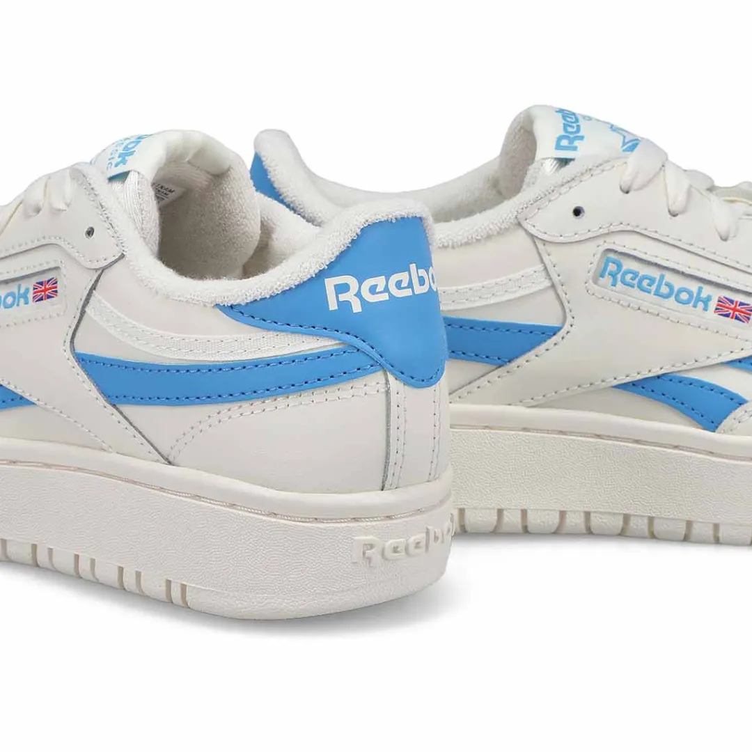 Clean, minimalist design. The Club C Double white/ gum tennis-inspired shoes from Reebok keeps your look sleek and simple. Pops of subtle contrast color adds a chic touch. A Reebok logo window with a Union Jack gives them old-school style. The upper is made of soft, flexible leather. Stacked midsole for extra height and a chunky profile.There’s nothing quite like a fresh white sneaker!