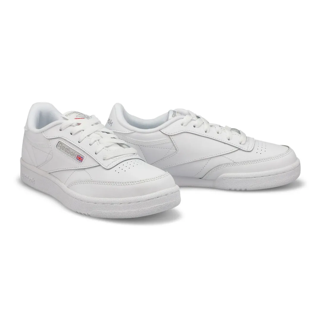 Clean, minimalist design. The Club C chalk/ chalk/ green tennis-inspired shoes from Reebok keeps your look sleek and simple. A Reebok logo window with a Union Jack gives them old-school style. The upper is made of soft, flexible leather. High-abrasion-resistant rubber outsole adds durable responsiveness. There’s nothing quite like a fresh sneaker!