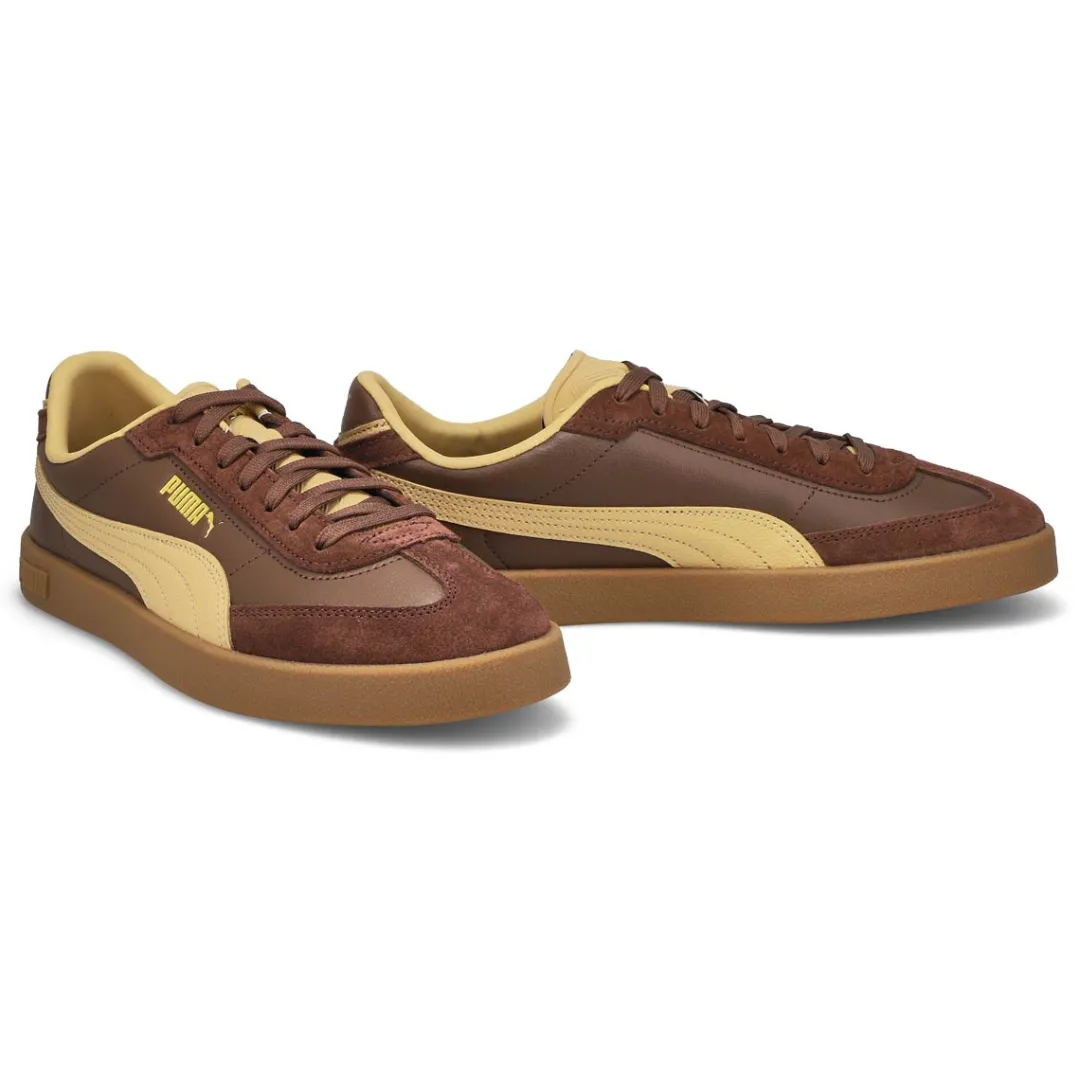Baseketball-inspired, with clean, court-ready lines and a sporty silhouette, the Club Era II black/ white/ gold lace up sneaker from Puma makes classic look cool. Featuring comfortable construction, branding and elements for added flair. The upper of this shoe is made with at least 20% recycled materials as a step toward a better future.