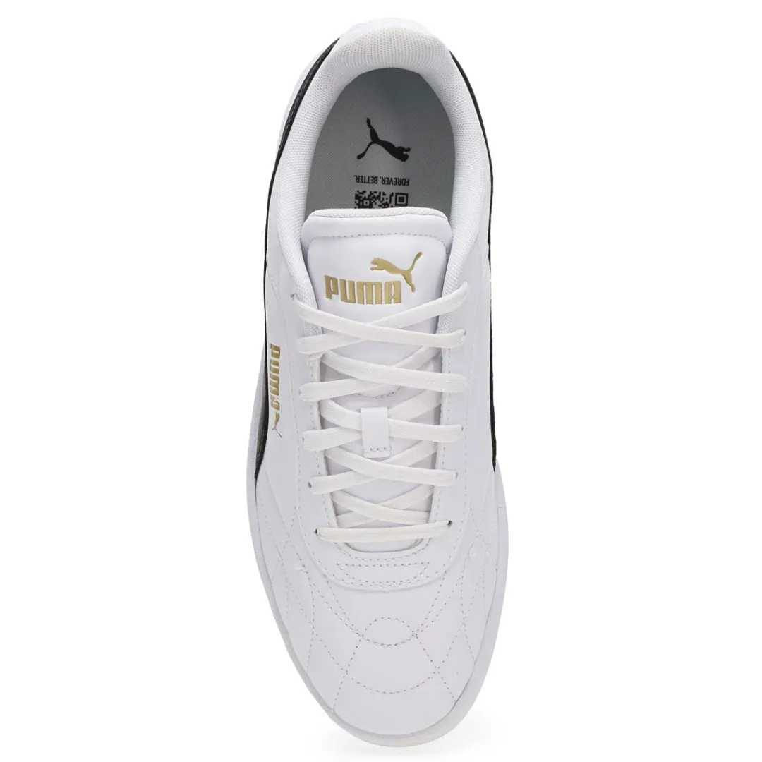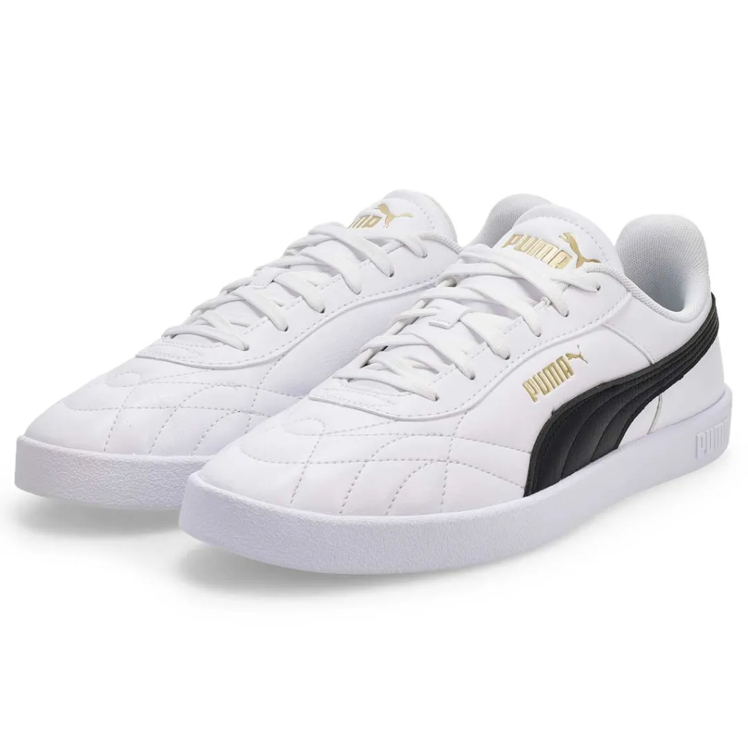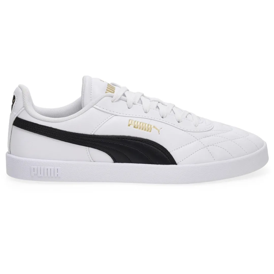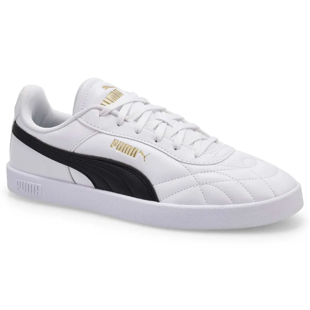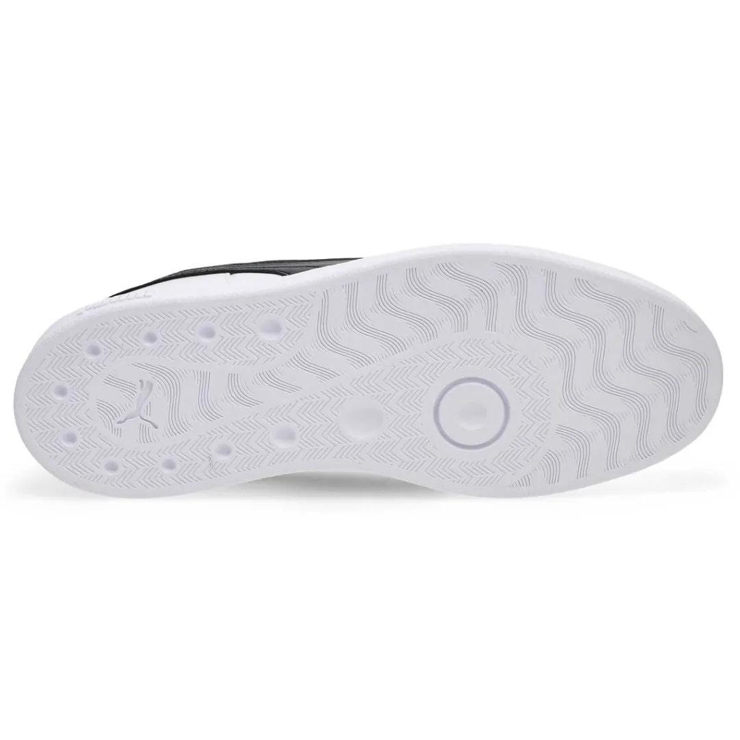 Baseketball-inspired, with clean, court-ready lines and a sporty silhouette, the Club II Indoor white/black lace up sneaker from Puma makes classic look cool. Featuring comfortable construction, branding and elements for added flair. The upper of this shoe is made with at least 20% recycled materials as a step toward a better future.
