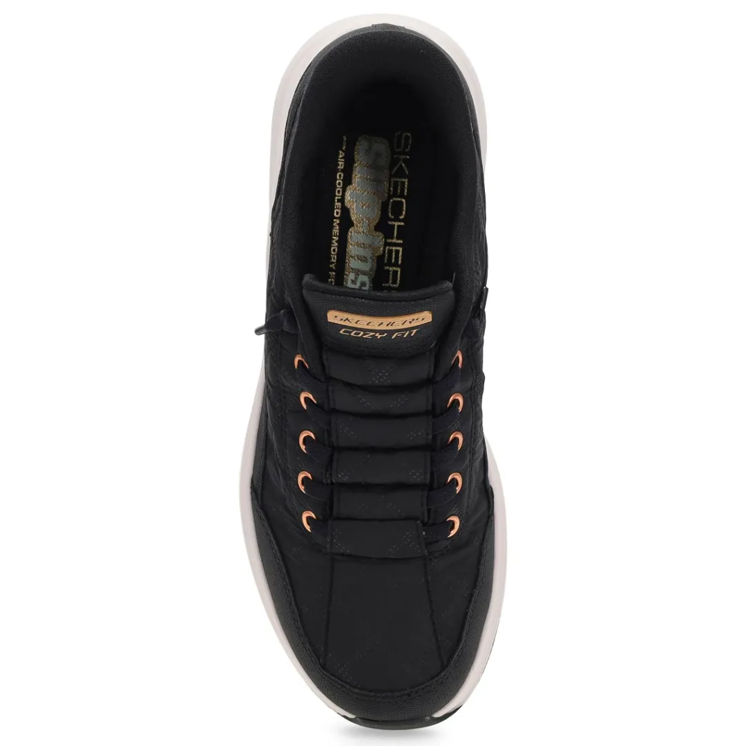 PUFFER FIT Step into plush luxury and cozy comfort with Hands Free Slip-ins Contour Foam – Cozy Fit Golden Hour Sneaker from Skechers. Designed with their Heel Pillow, this slip-on style features a quilted Cozy Fit and duraleather overlay upper with tied-off stretch laces, Contour Foam midsole cushioning, and Skechers’ signature cushioned Skechers Air-Cooled Memory Foam insole.