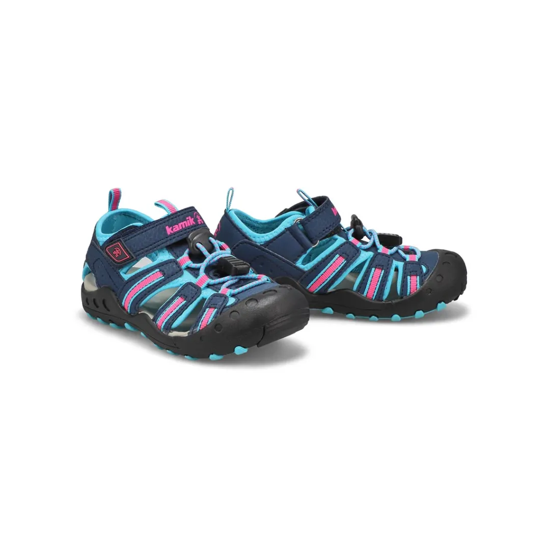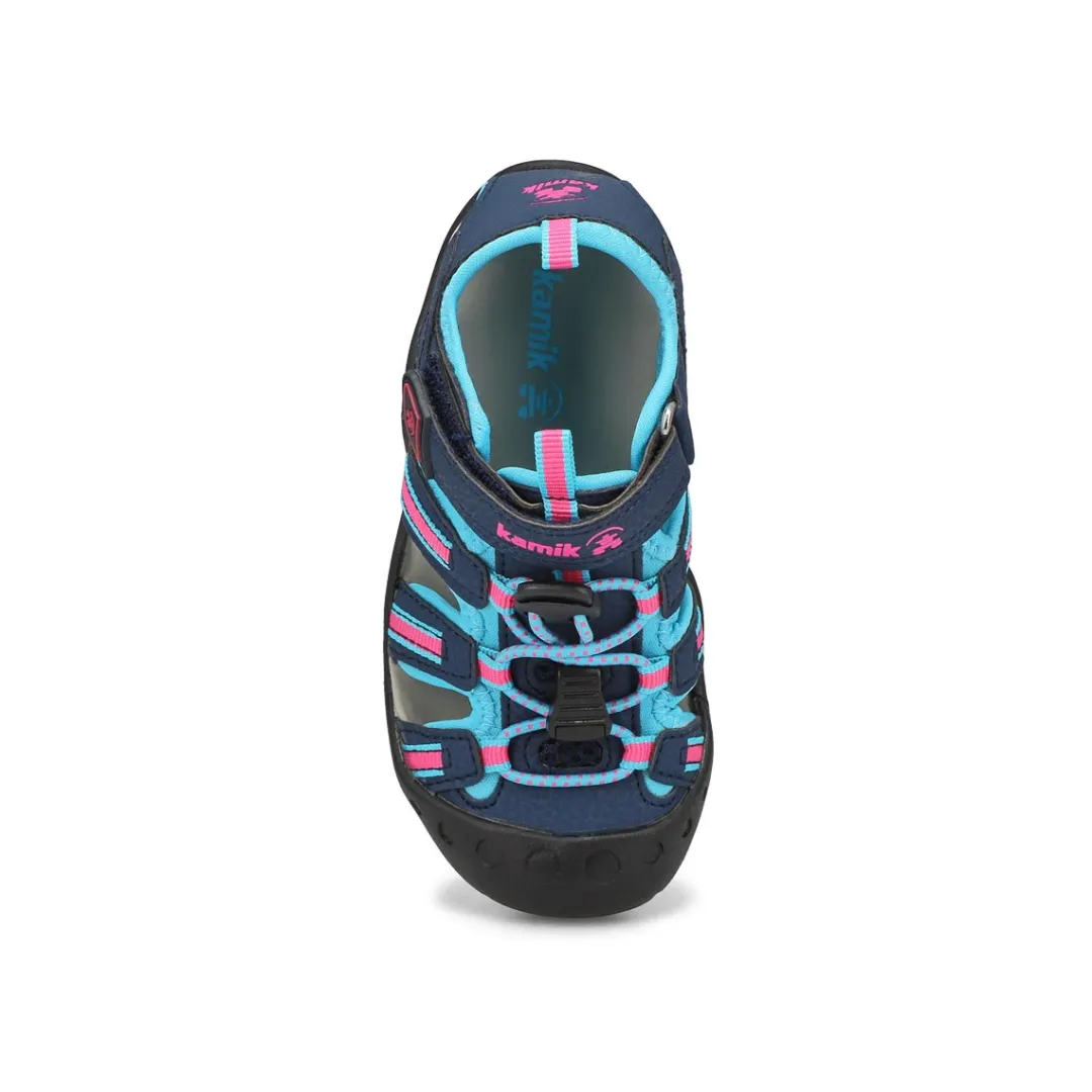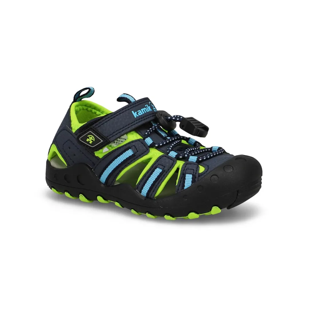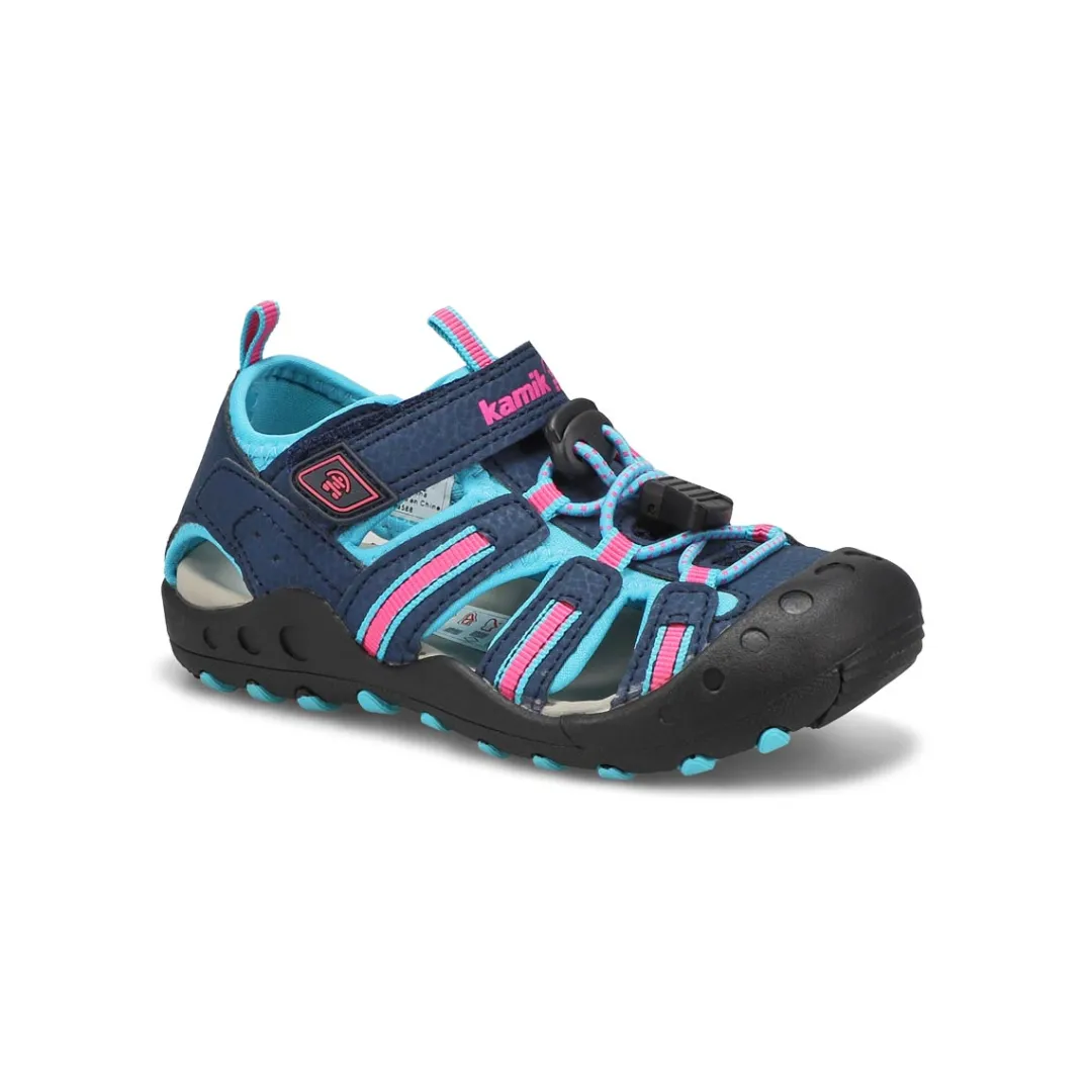 Watch your little one run through the sprinkler in total comfort this season in the Crab bule closed toe sandal from Kamik. After all, these Crab sandal for kids feature a waterproof synthetic leather upper and a quick-drying, moisture-wicking lining! Adjustable instep hook and loop strap for a secure fit. One-pull bungee lacing with Easy-Grab Lace Lock. Odour-eliminating, natural and non-toxic Cleansport NXT treatment.