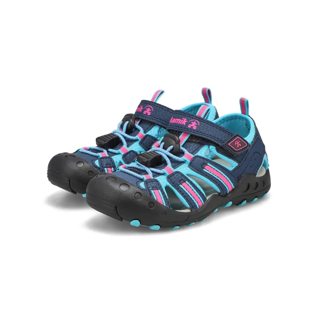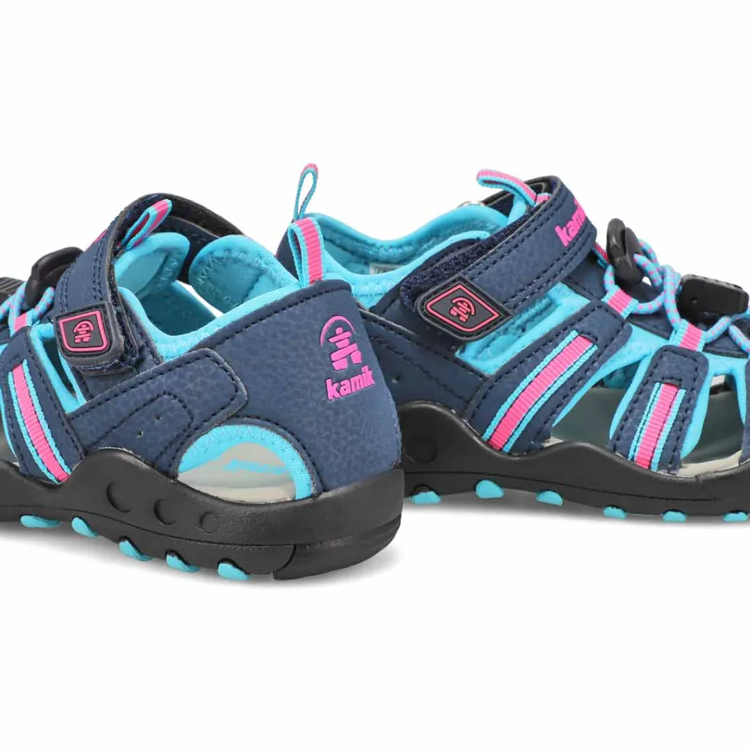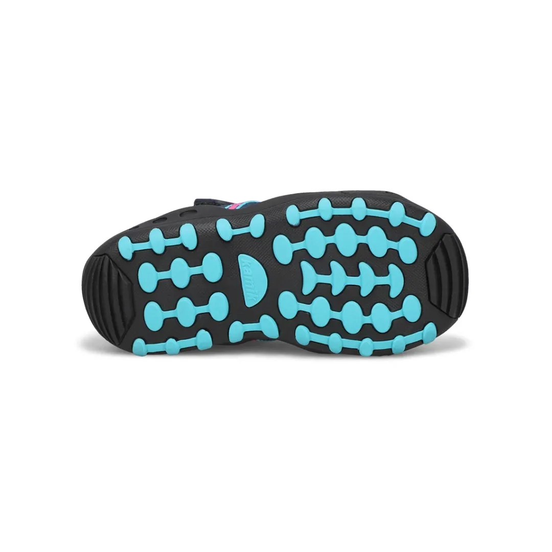 Watch your little one run through the sprinkler in total comfort this season in the Crab bule closed toe sandal from Kamik. After all, these Crab sandal for kids feature a waterproof synthetic leather upper and a quick-drying, moisture-wicking lining! Adjustable instep hook and loop strap for a secure fit. One-pull bungee lacing with Easy-Grab Lace Lock. Odour-eliminating, natural and non-toxic Cleansport NXT treatment.