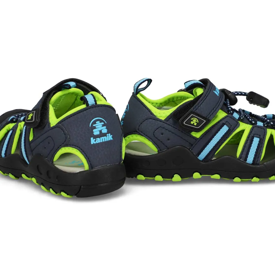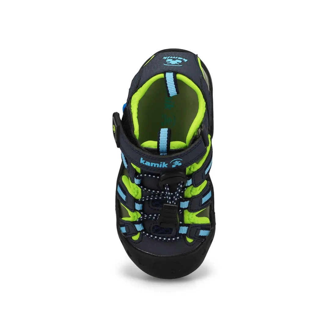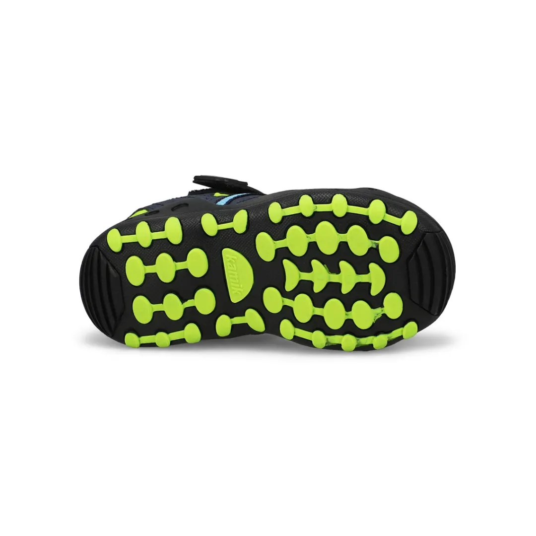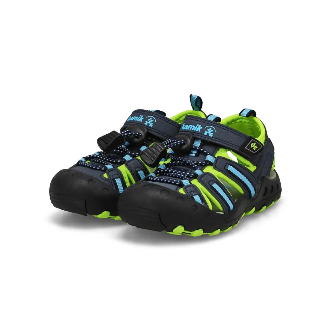 Watch your little one run through the sprinkler in total comfort this season in the Crab bule closed toe sandal from Kamik. After all, these Crab sandal for kids feature a waterproof synthetic leather upper and a quick-drying, moisture-wicking lining! Adjustable instep hook and loop strap for a secure fit. One-pull bungee lacing with Easy-Grab Lace Lock. Odour-eliminating, natural and non-toxic Cleansport NXT treatment.