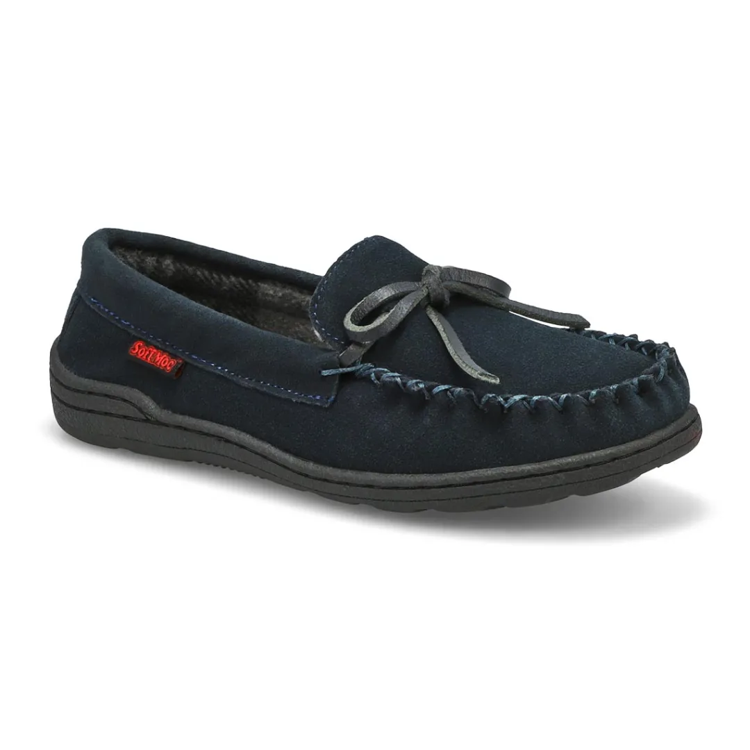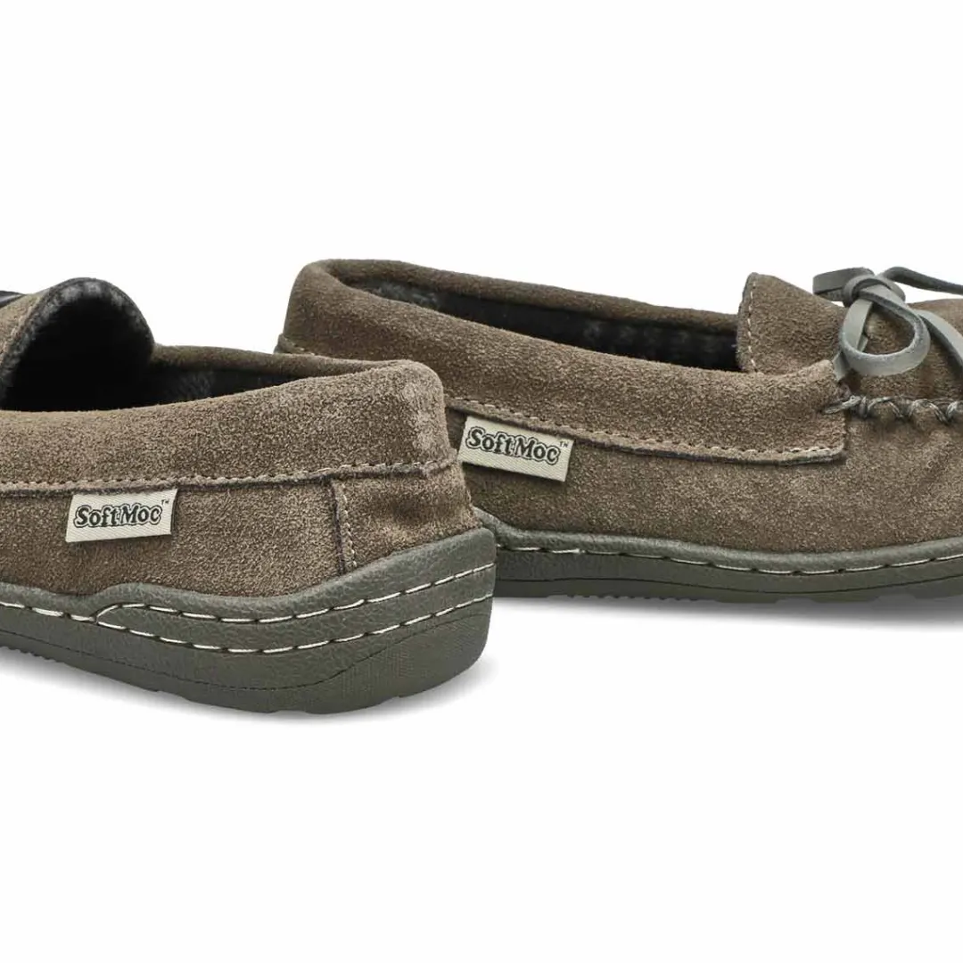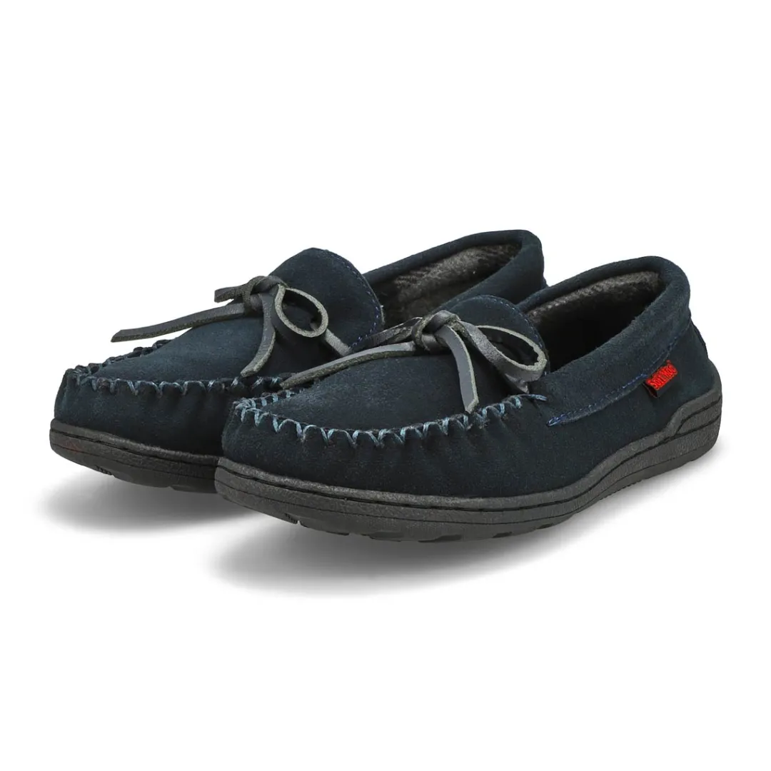 Their feet will thank you once they slip on the Danny Jr dark brown SoftMocs slipper from SoftMoc. Featuring beautiful suede upper with a soft plus lining that surrounds the foot in comfort. The Danny SoftMocs is designed with a durable TPR sole allows for indoor/outdoor use. Slight dye transfer may occur with darker coloured sheepskin during first few weeks of wear.
