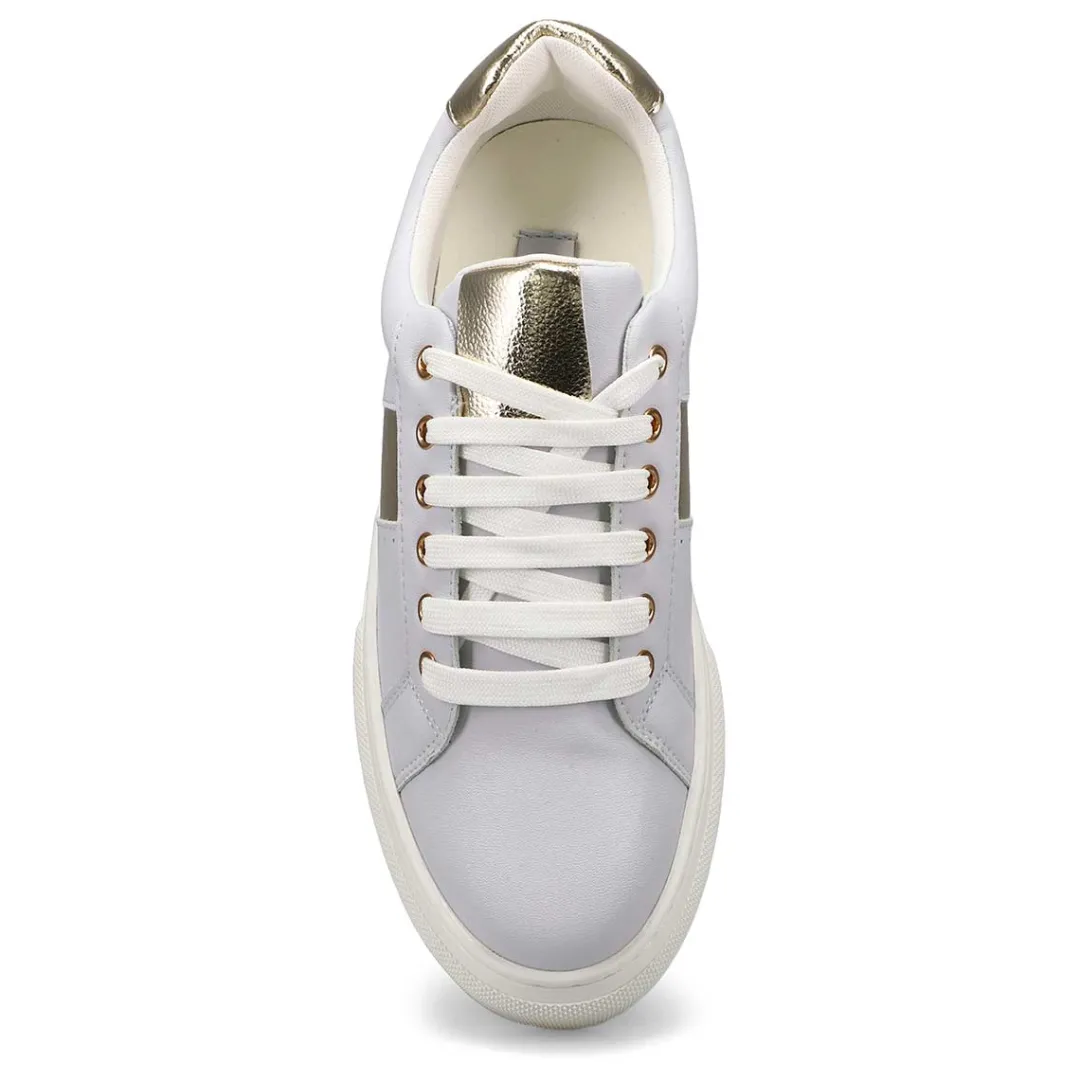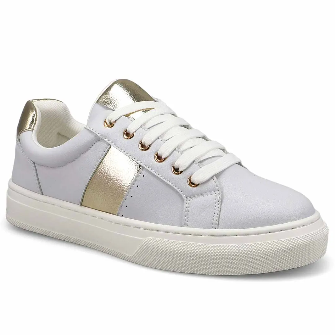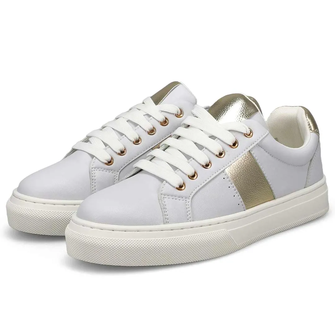 Freshen your fall footwear rotation with this classic kick. The Dell white /gold sneaker features clean lines with a cushioned collar for added comfort. Featuring a synthetic upper with a textile lining that surrounds the foot in comfort. Lace up styling for a secure fit. You will want to make the Dell lace up sneaker part of his must-have list for this season!