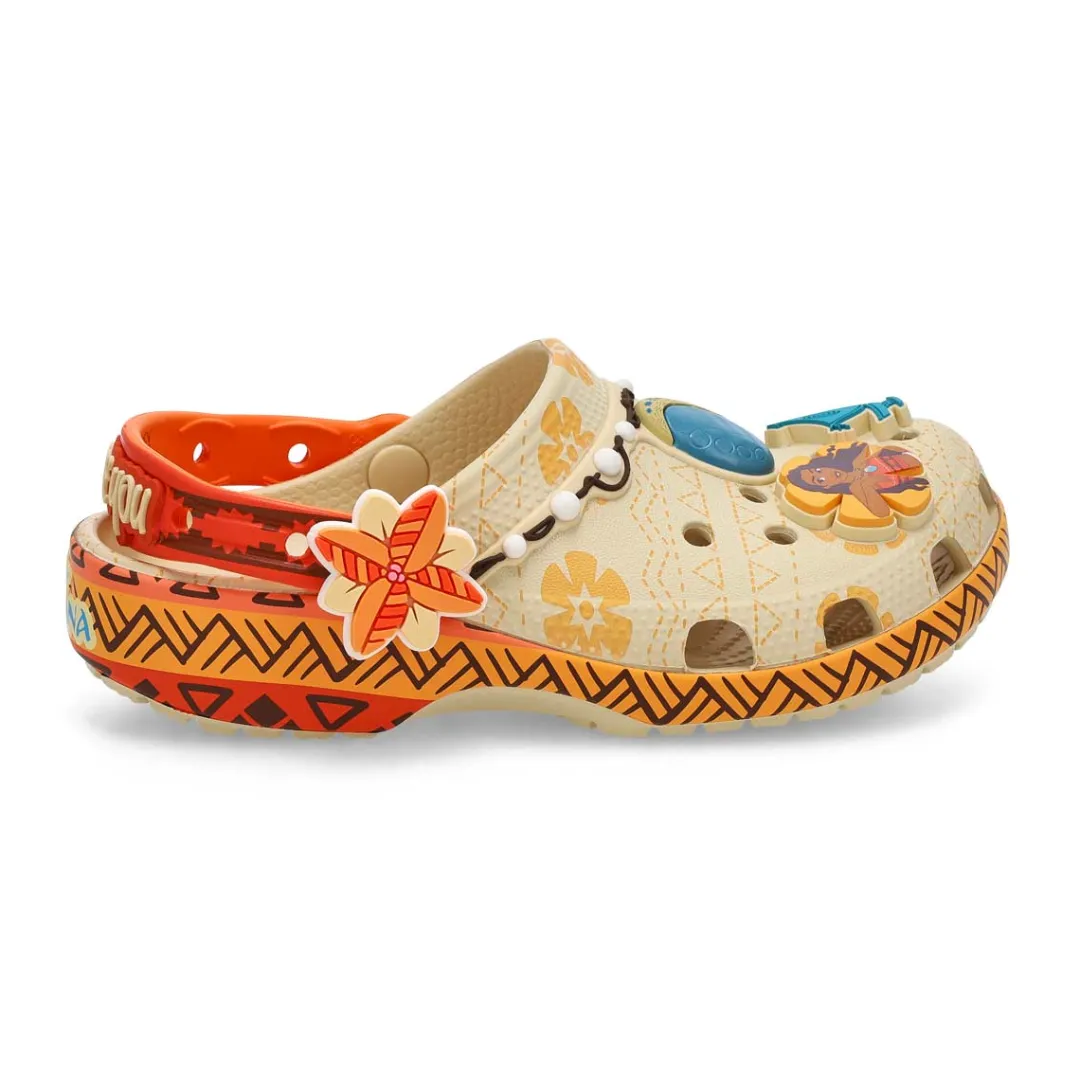 Kids’ Disney Moana Classic Clog is a Prepare your little adventurer for a journey. The charming Kids’ Disney Moana Classic Clog is adorned with Jibbitz charms featuring everyone’s favorite characters Pua, Hei Hei, and more. Rest assured that your bold adventurer will travel in comfort and style thanks to the light, durable Croslite™ material.