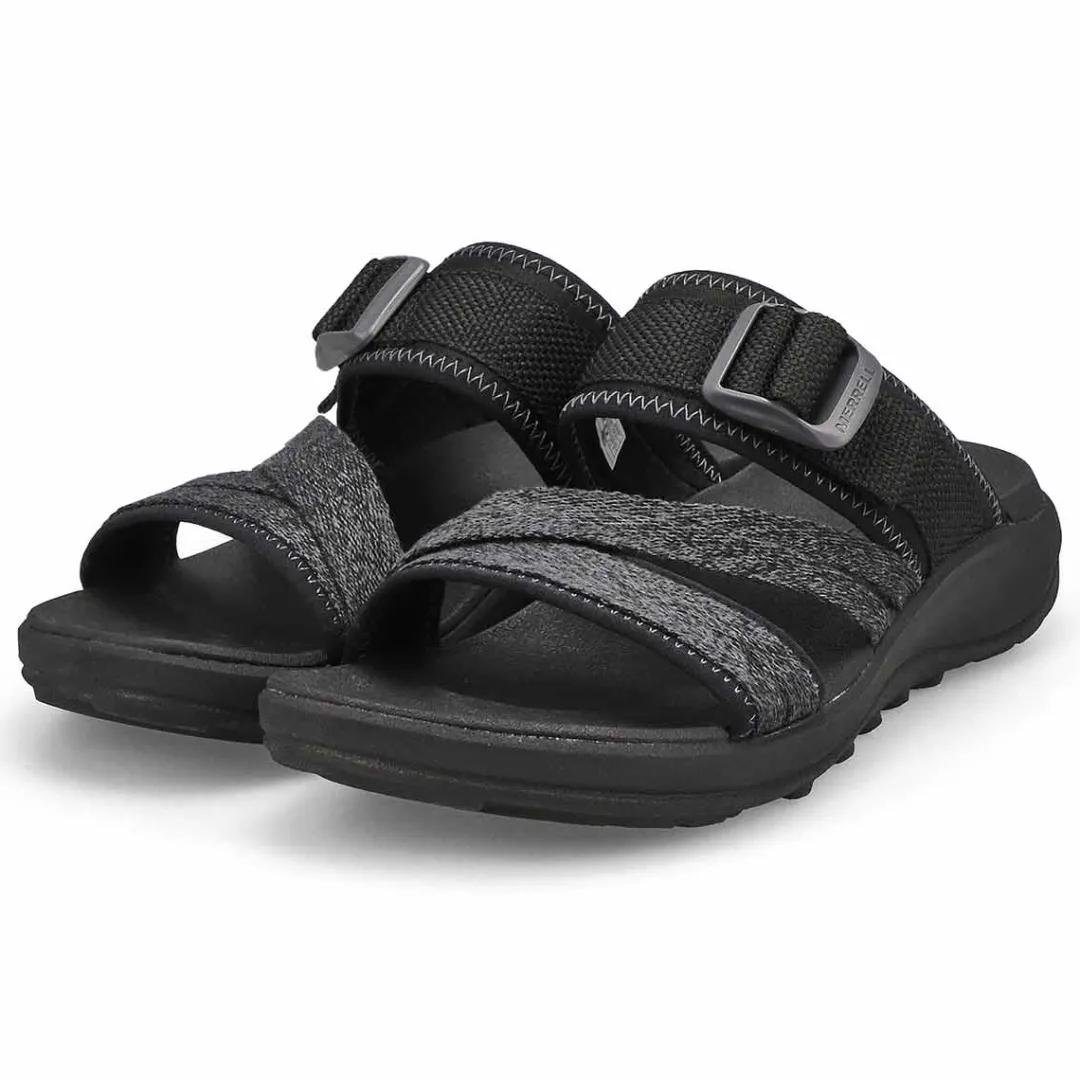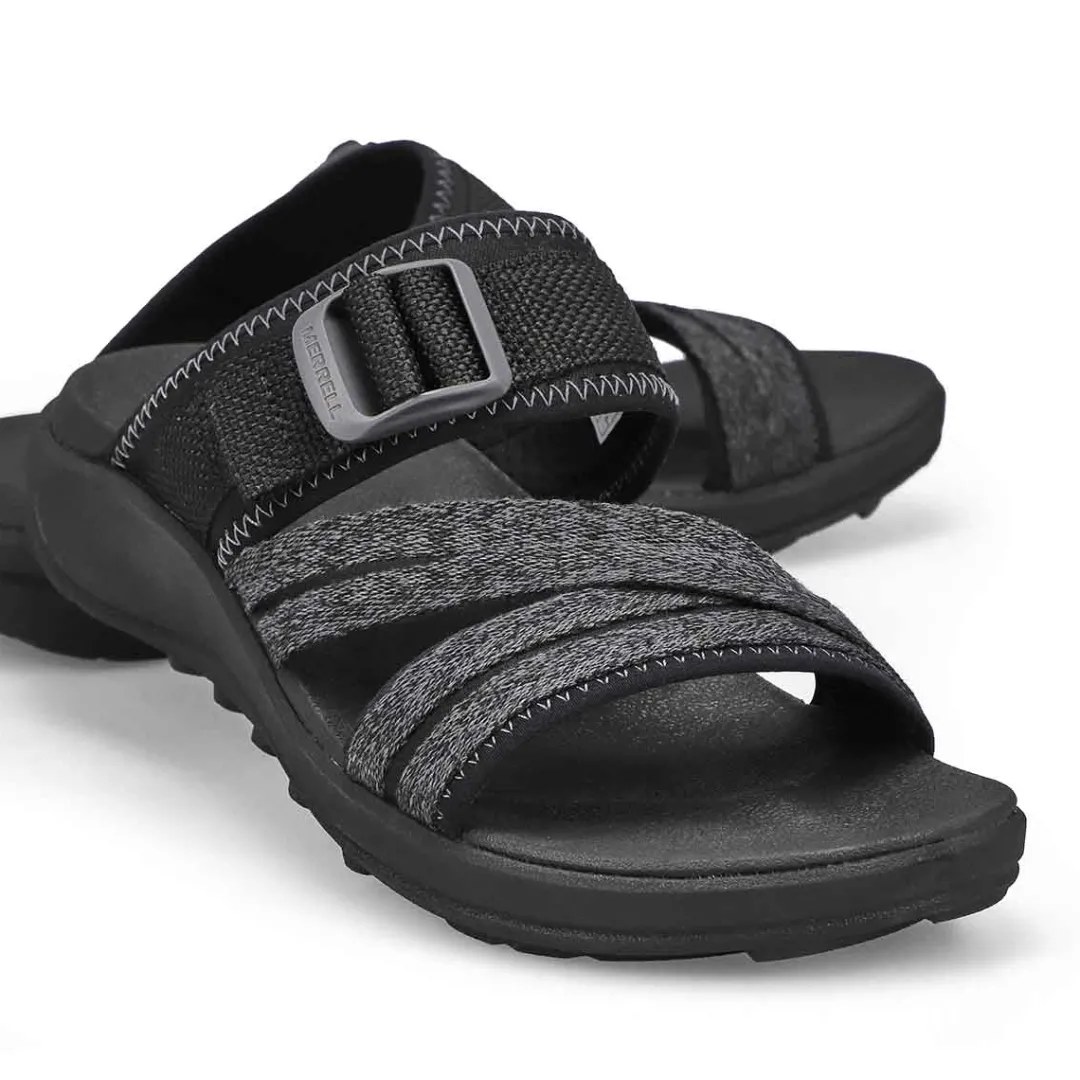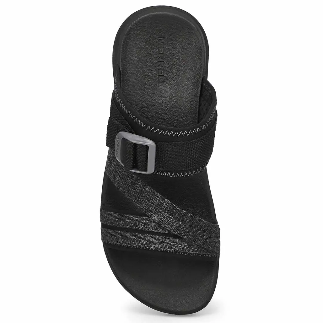 Comfortable, cute, and dependable. It’s your time in the sun so enjoy it in the District 4 black slide sandal from Merrell clean sport NXT treatment for natural odor control, and a fixed EVA foam insole for comfort. Adjustable buckle strap and the upper is made up of 70% recycled webbing and breathable mesh. Vegan-Friendly.