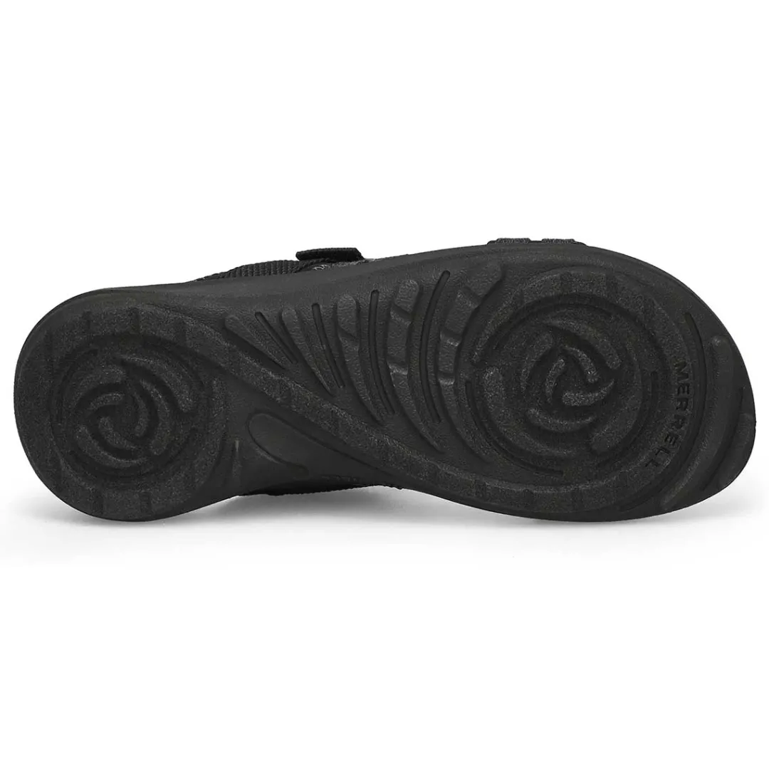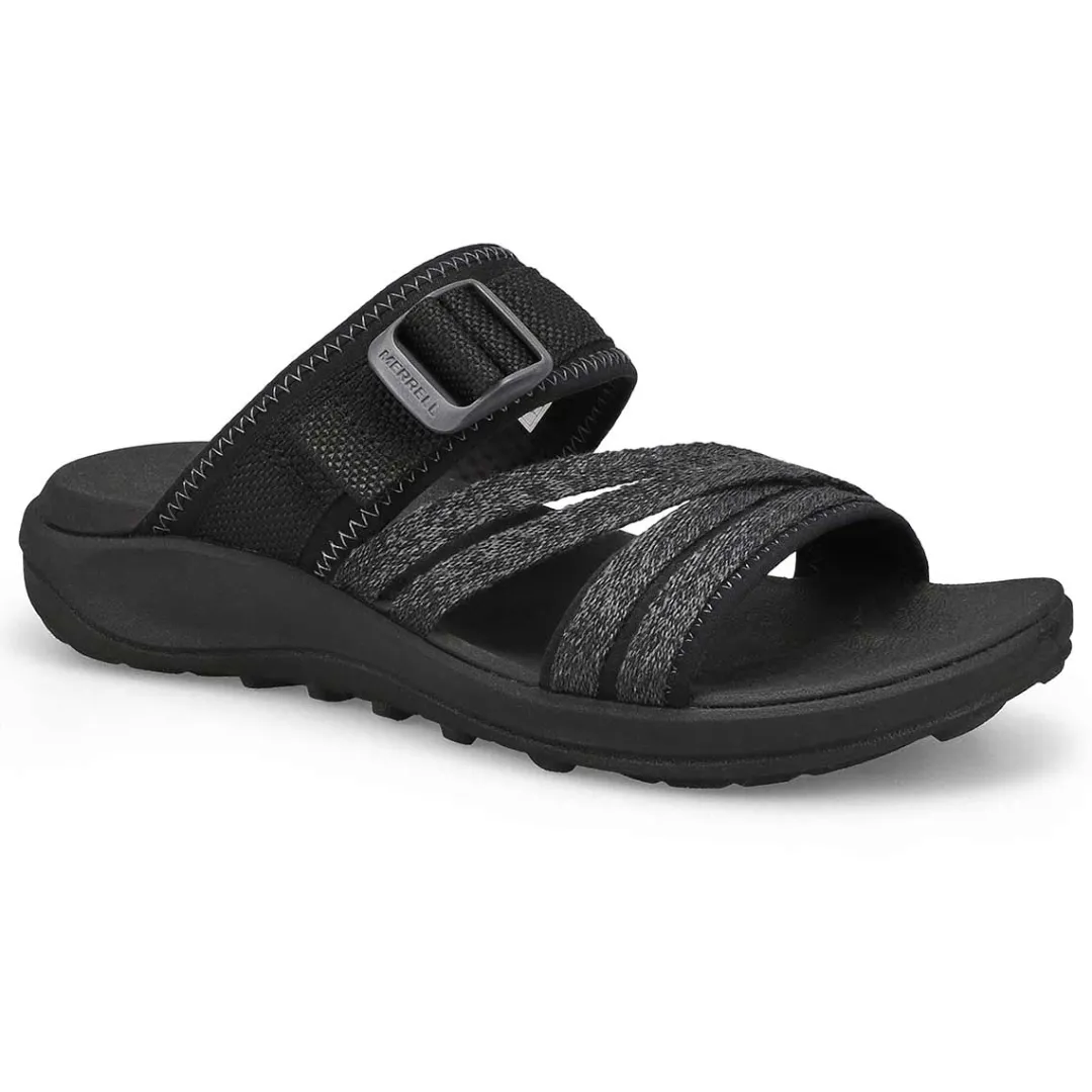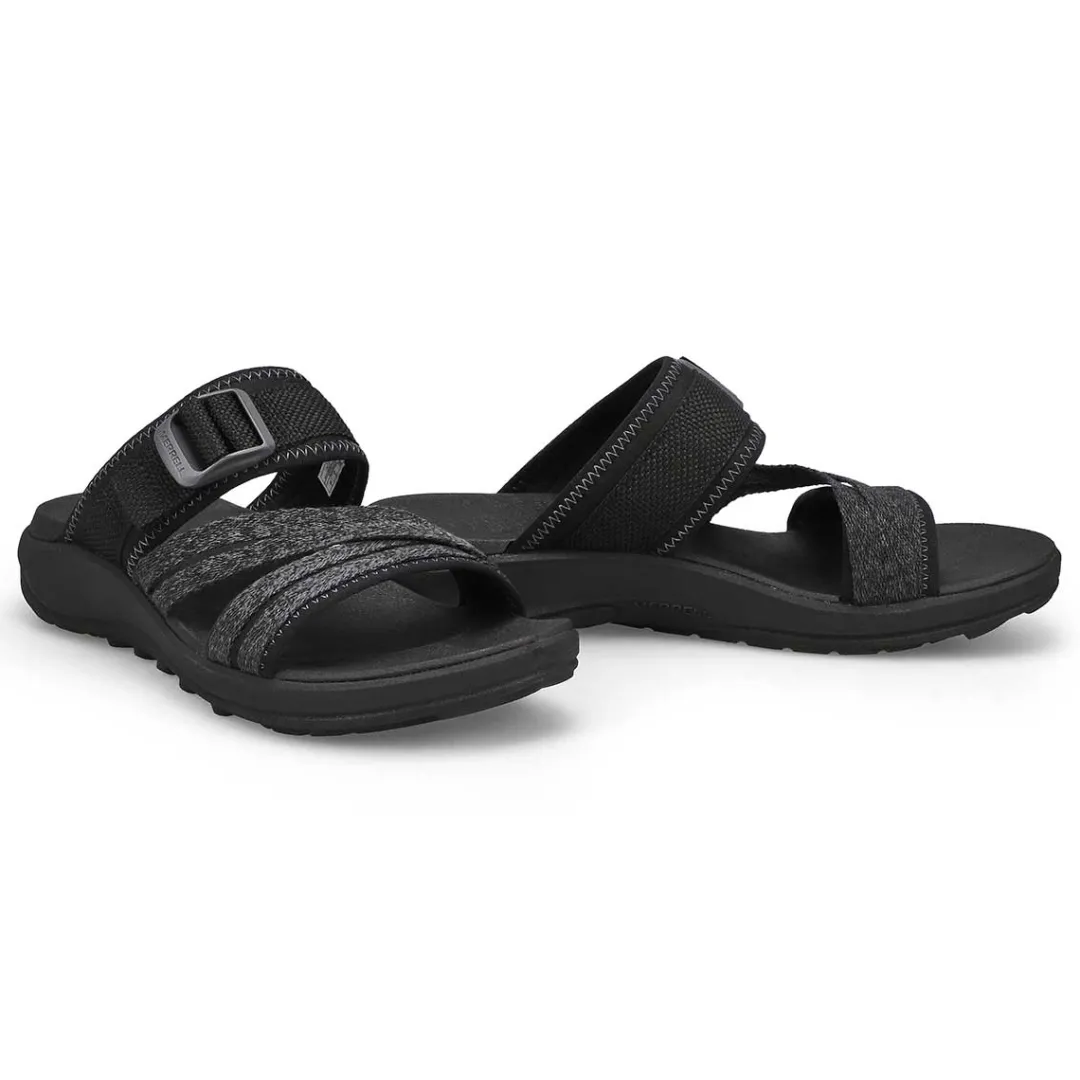 Comfortable, cute, and dependable. It’s your time in the sun so enjoy it in the District 4 black slide sandal from Merrell clean sport NXT treatment for natural odor control, and a fixed EVA foam insole for comfort. Adjustable buckle strap and the upper is made up of 70% recycled webbing and breathable mesh. Vegan-Friendly.
