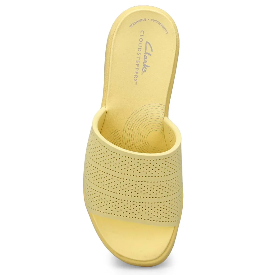 Casual days call for laid-back Cloudsteppers sandals and Drift Twist Platform Slide Sandals from Clarks delivers with its breathable textured upper. Featuring a super-soft foam footbed and bold EVA outsole. Showcasing a curved shape to complement the foot perfectly, step from week to weekend in a lightweight flat you can always count on. Wide Width.