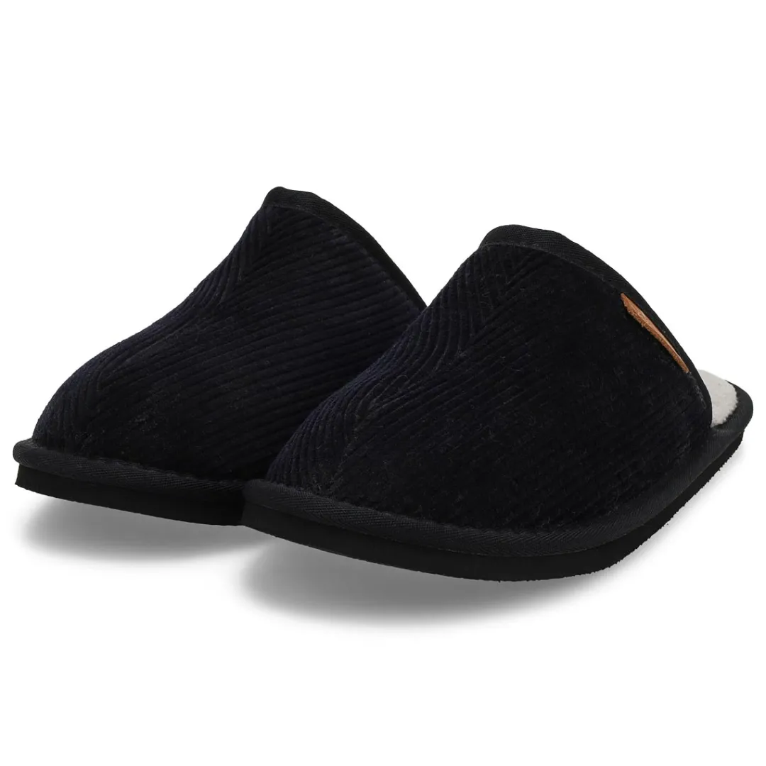 You will love the comfort and the warmth provided by theFella Open Back black slipper from SoftMoc. Featuring beautiful corduroy upper. Memory foam padded insole surrounds the foot in comfort. Easy slip on styling for easy on/off. Durable rubberlon outsole. They are the perfect gift for someone special or just a treat for you.