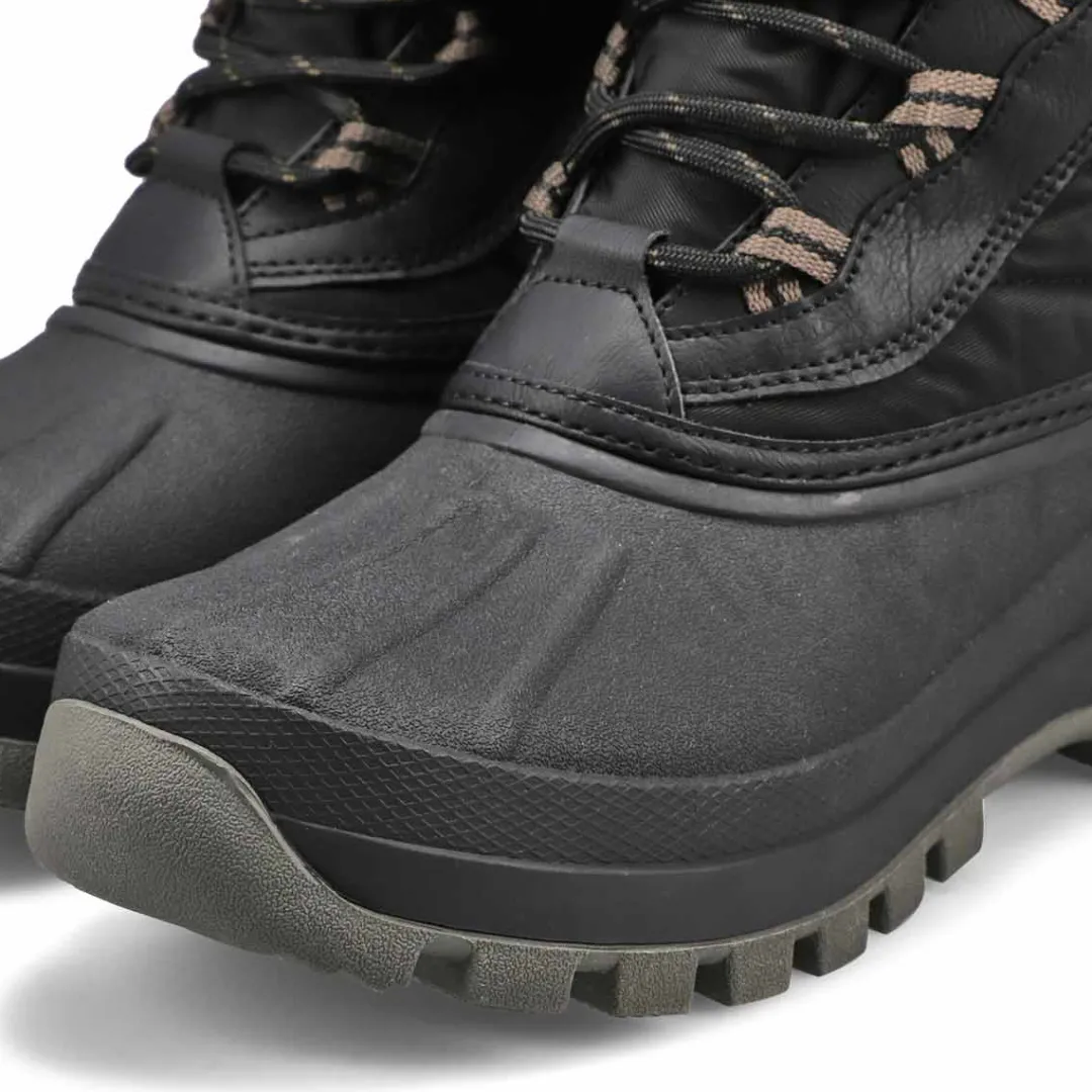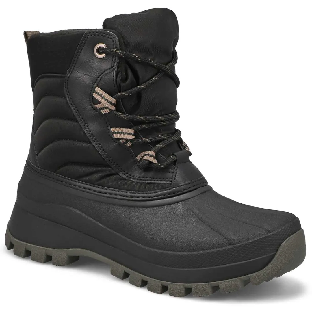 The Fiska Waterproof black winter boot from Cougar is a mid-calf, light-weight nylon and synthetic winter boot. Featuring a rounded toe and front lace closure for a secure fit. Polar plush lining with Thermlite Insulation. Polar fleece lining surrounds the foot in soft comfort. Slip-resistant, Thermoplastic rubber outsole with lightweight EVA midsole.