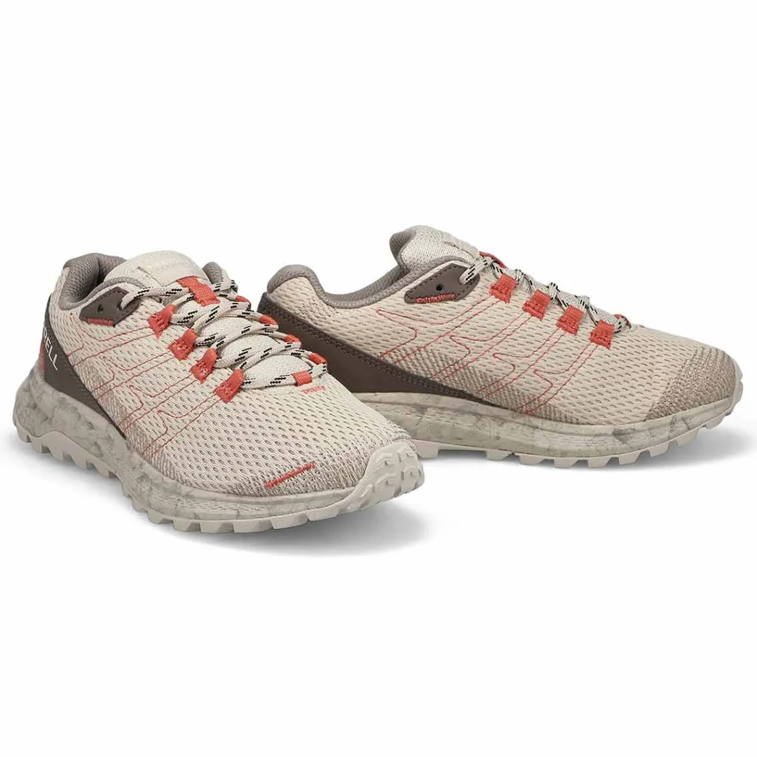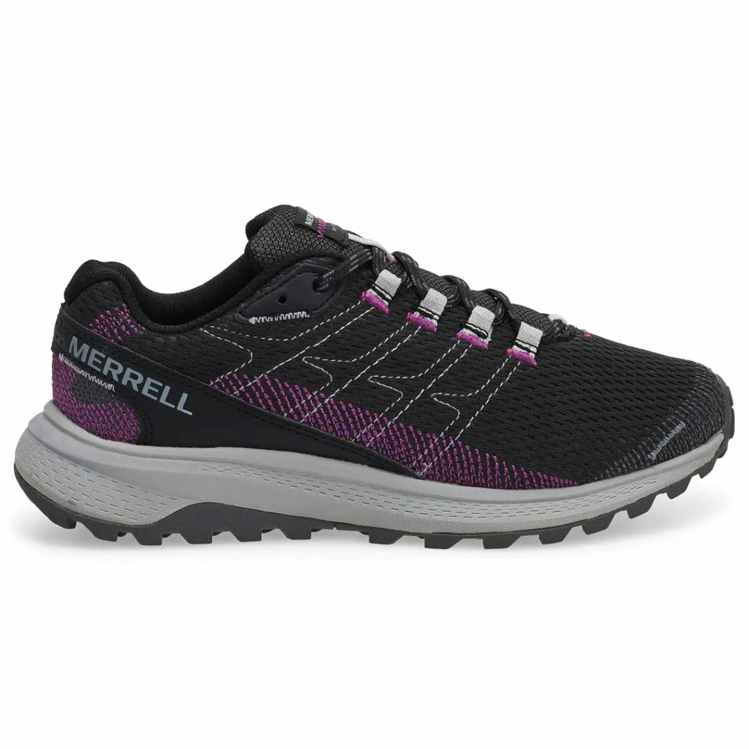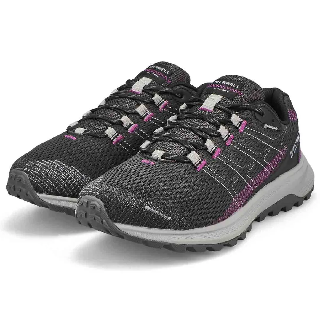 Lightweight and capable, the Fly Strike Hiking Sneaker from Merrell has a luggy trail runner with abrasion-resistant upper is designed for fast runs on paved and hard-packed trails. Super Rebound Compound provides durable shock absorption in the heel to help reduce torque and allow for a smooth transition into the midfoot. Merrell sticky rubber outsole with durable traction that grips when and where you need it.