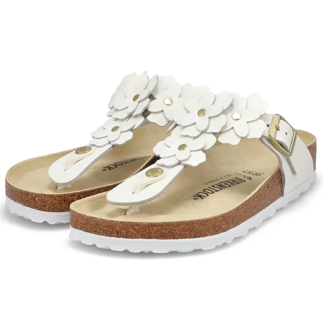 Appliqué flowers make a garden party of this season’s Gizeh sandal from Birkenstock. With a cushioned footbed that helps provide excellent arch support. Durable EVA outsole, cork footbed molds to each individual foot to provide a custom fit. This Birkenstock sandal is a genuine classic, emphasizing the handcrafted and natural look of stylish sandals.