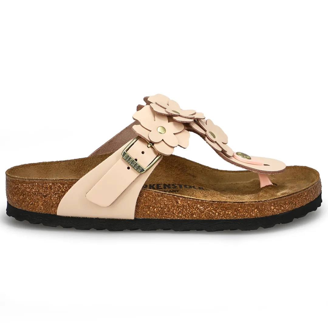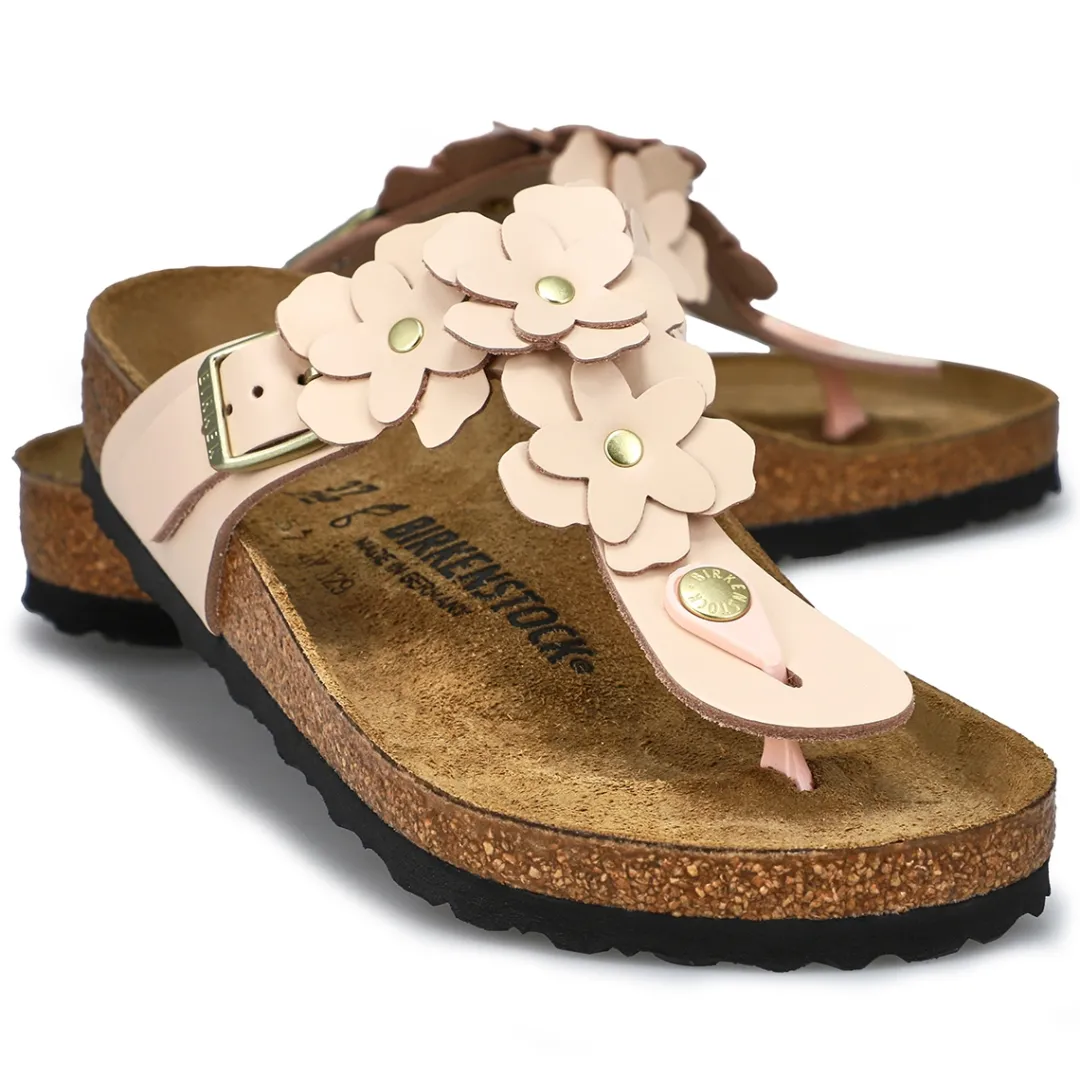 Appliqué flowers make a garden party of this season’s Gizeh Flowers Sandal from Birkenstock. With a cushioned footbed that helps provide excellent arch support. Durable EVA outsole, cork footbed molds to each individual foot to provide a custom fit. This Birkenstock sandal is a genuine classic, emphasizing the handcrafted and natural look of stylish sandals.