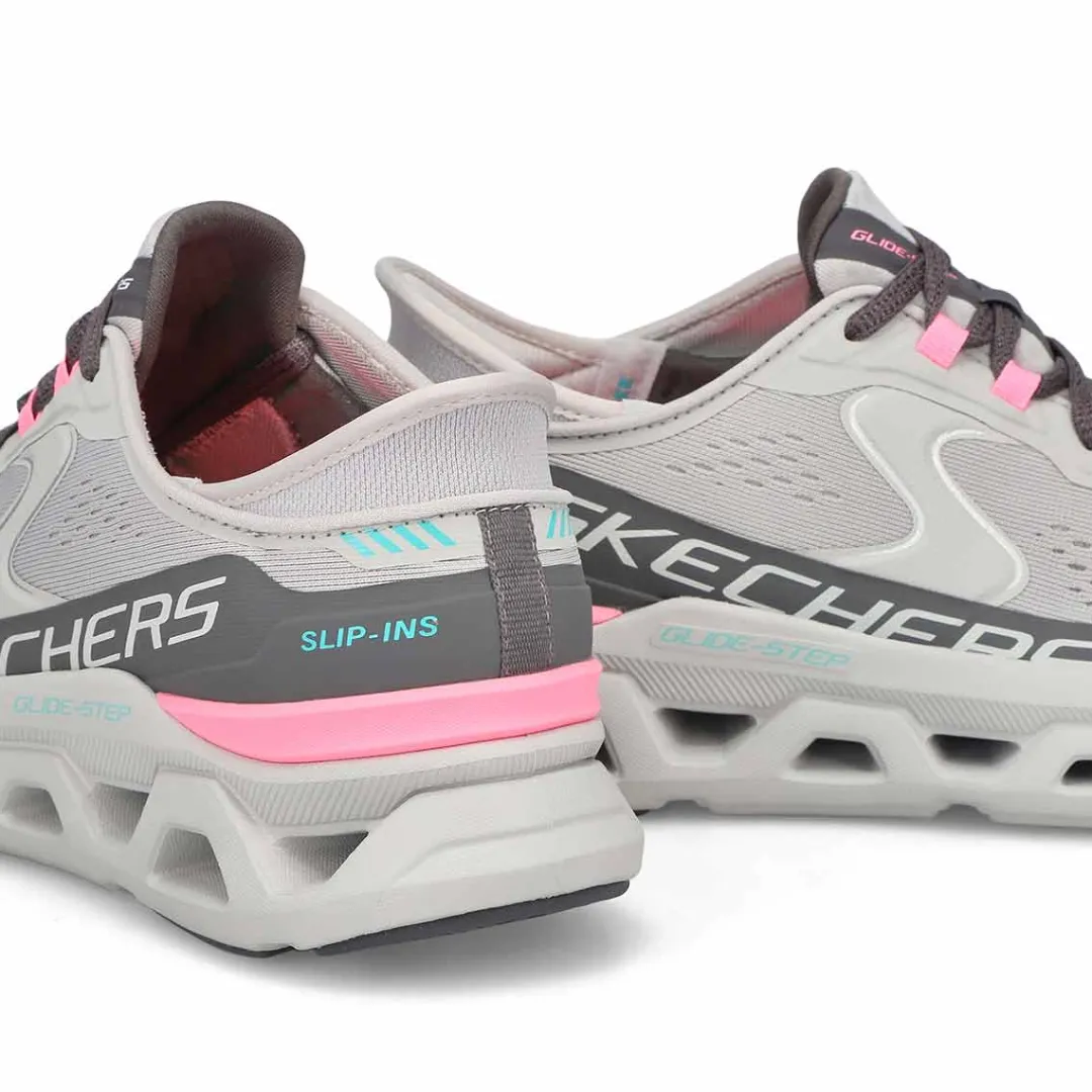 Simply step into flexible comfort wearing the Skechers Hands Free Slip-ins Glide-Step Altus grey/ pink sneaker. Designed with Skechers’ exclusive Heel Pillow that helps hold your foot securely in place. This lace-up trainer features an engineered mesh upper with synthetic hot melt overlays, a Skechers Air-Cooled Memory Foam comfort insole, and a Glide-Step geometric cushioned midsole.