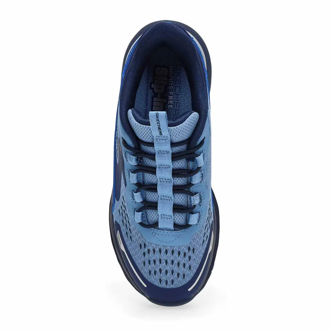 Fuel their need for speed and comfort with the Skechers Hands Free Slip-Ins: Glide-Step Plus – Vista-Lane Sneaker. Designed with Skechers’ Heel Pillow, this well-cushioned athletic slip-on features a synthetic and mesh underlay upper with stretch laces, a Skechers Air-Cooled Memory Foam comfort insole, and a Glide-Step geometric cushioned midsole that helps offer a pillow-like soft landing and explosive takeoff.