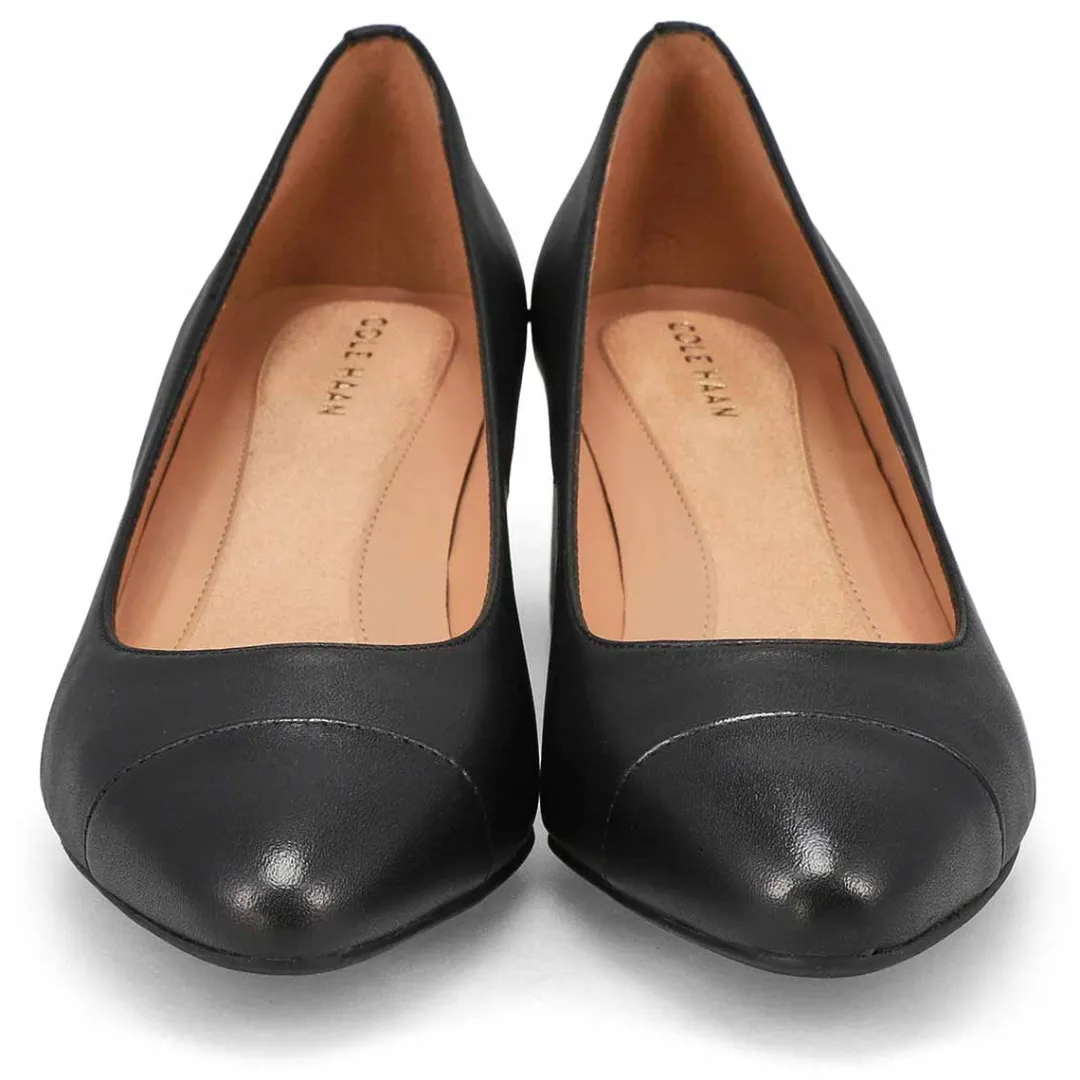 Dressed up or down, the Go-To Block black classic pump from Cole Hann is a staple for any wardrobe. The Go-To Block Heel Pump delivers a timeless silhouette with the right amount of lift from its walkable block heel. A molded footbed for cushioning and a rubber outsole for flexibility mean you’re ready to take on whatever the day has in store.
