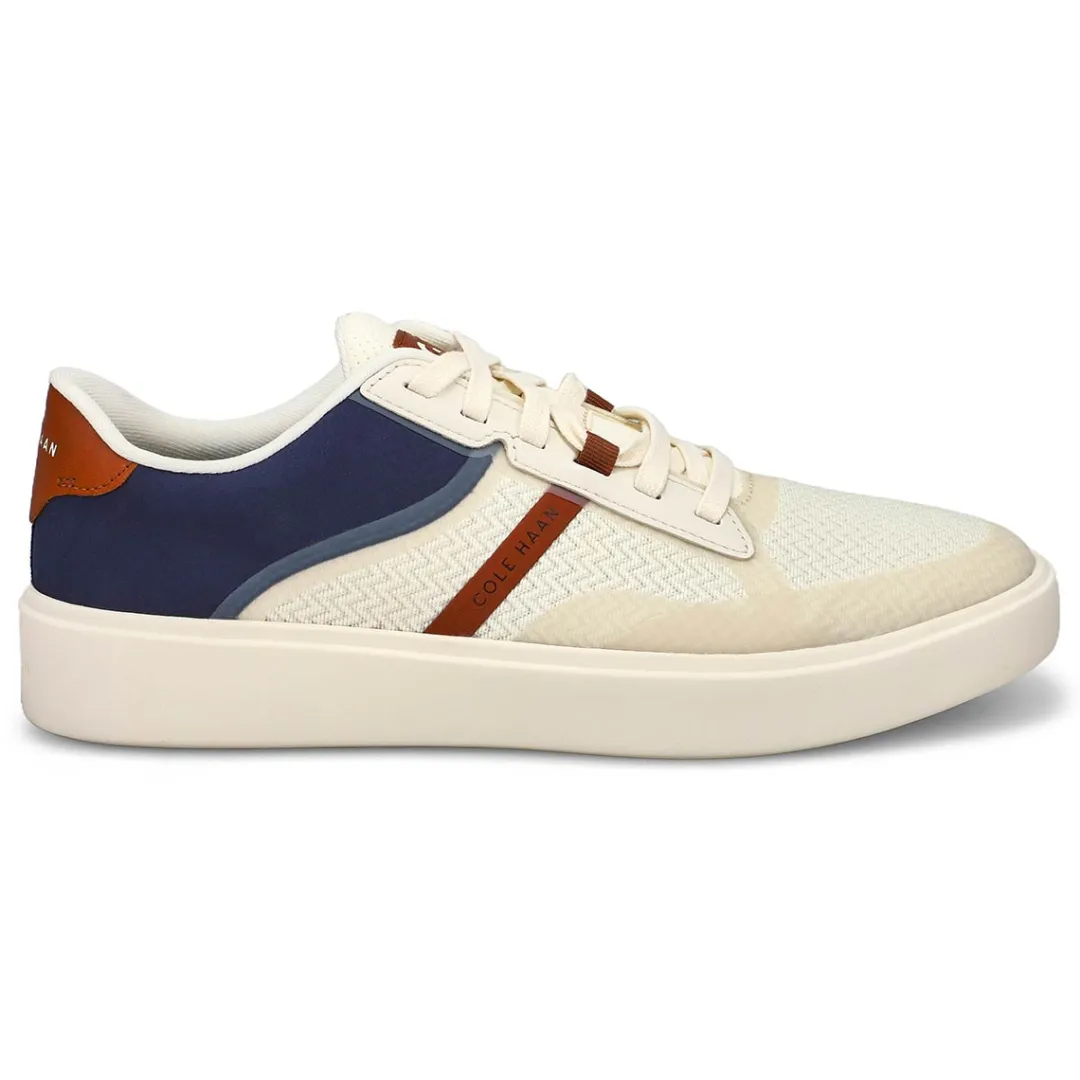 Experience old-school style with modern comfort in the Grand Crosscourt Winner Ivory/Navy Blazer/Dark Sequoia/Natural Tan Sneaker from Cole Haan .From eye-catching zig-zag patterns to sleek solid overlays, this lace-up sneaker delivers retro court style wherever you roam. Built for comfort as much as looks, it features a padded footbed that cushions every step, keeping you stylish and supported all day long.