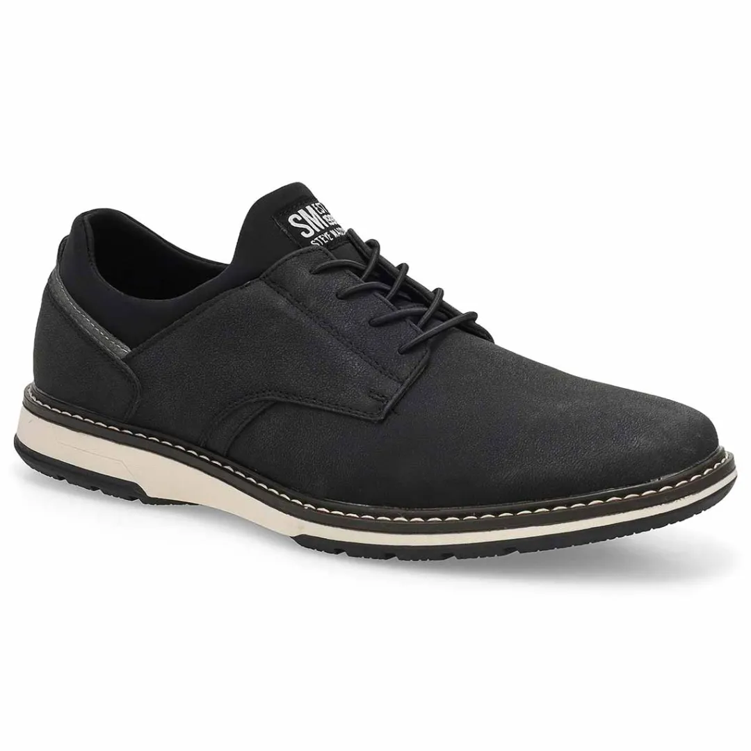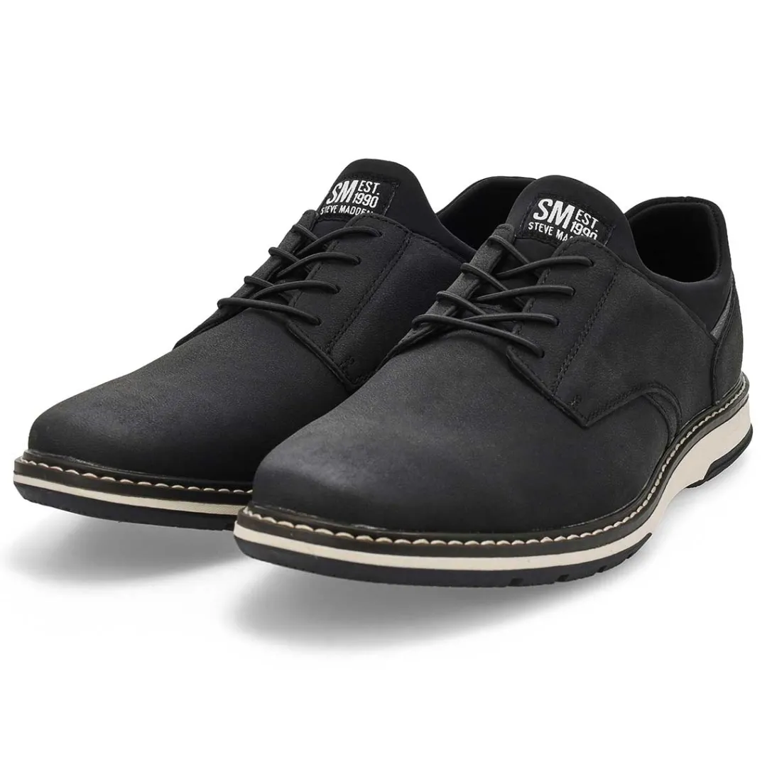 The Gunther black lace up Oxford by Steve Madden will make you stand out in any occasion! Featuring a vegan nubuck leather material upper with classic plain toe and secure-fit lace-up construction, comfortable breathable fabric lining and rubber outsole. You will want to make the Gunther lace up shoe part of your must-have list for this season!