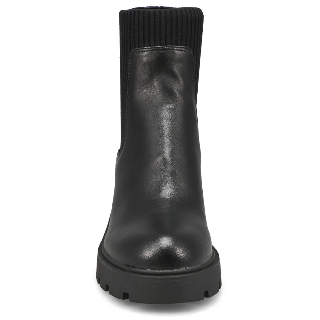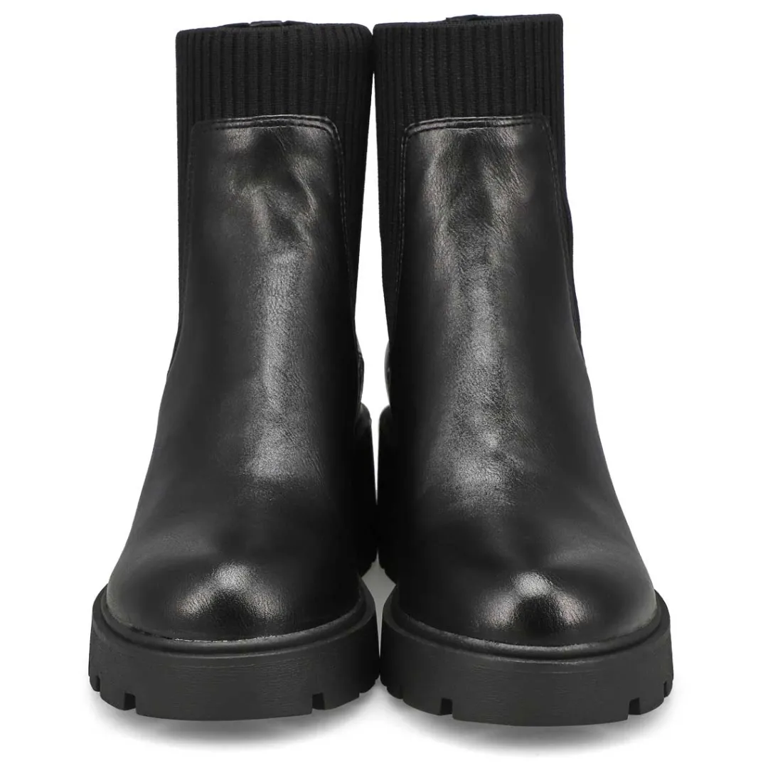 Experience sophisticated style with comfort in the Steve Madden Halona sand pant boots. These Chelsea boots boast a blend of vegan leather and textile upper and textile lining for comfort and support. These pull-up boots have knitted collar that not only adds a touch of elegance but also enhances comfort. These round-toe boots have lugged synthetic outsole for secure footing.