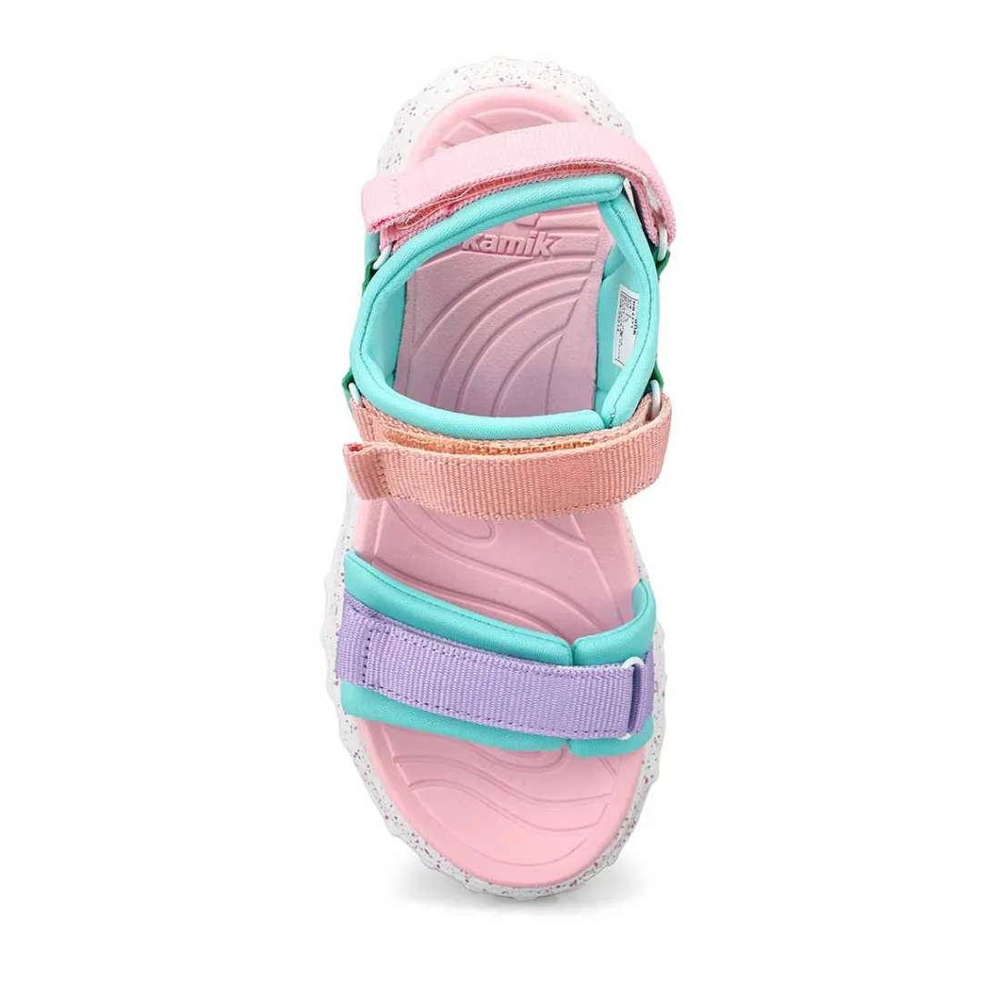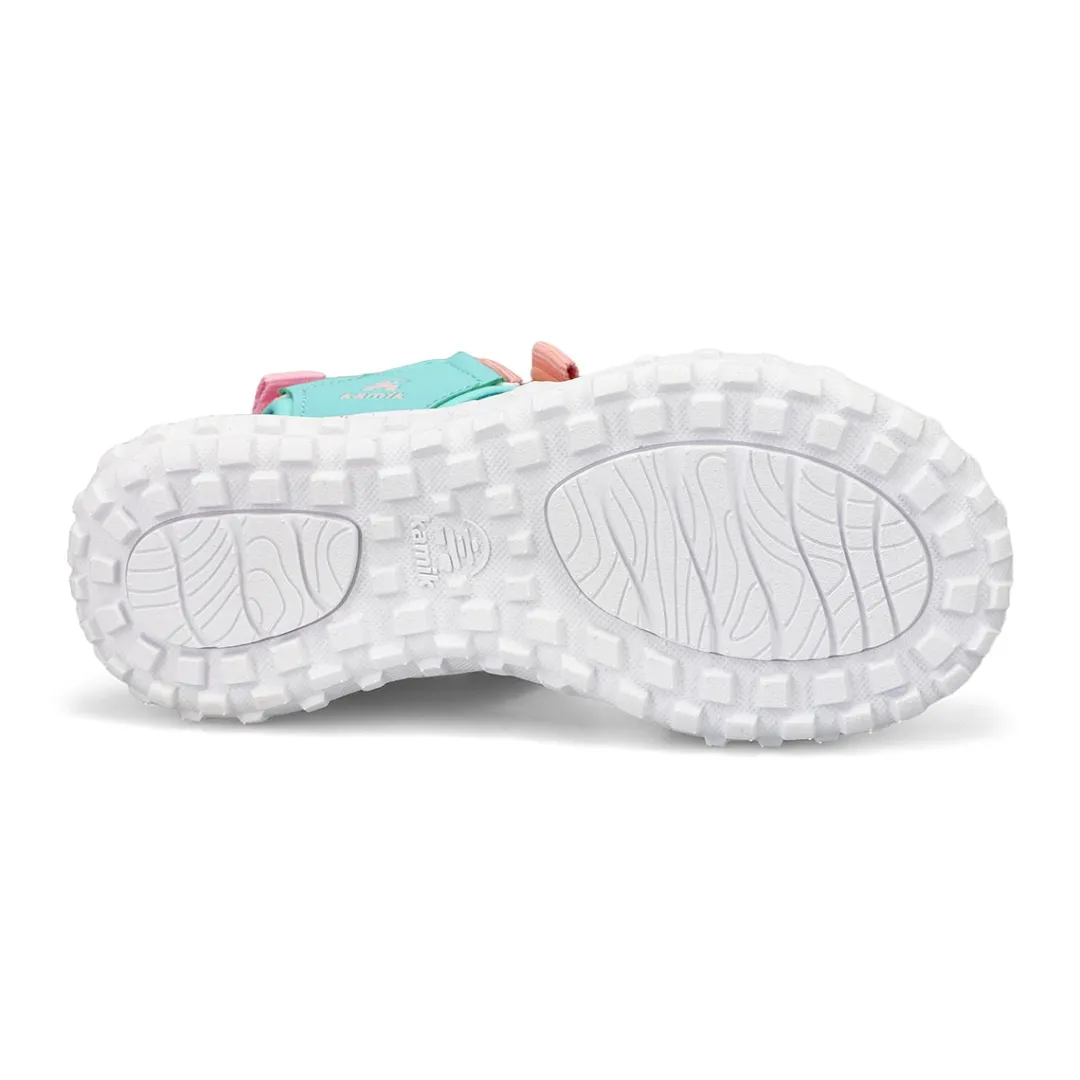 Your child will never want to lose their sense of wonder in the Harbor open-toe lilac/peach sport sandal from Kamik. Carefully crafted for maximum comfort during playtime, they feature adjustable heel, forefoot, and instep straps for a secure fit. Designed with a CushyStep EVA foam footbed for all day comfort. If your child loves puddle jumping, no, worries, with a fast-drying vegan leather and Cleansport NXT, you can rest assured their sandals will remain fresh and odour-free.