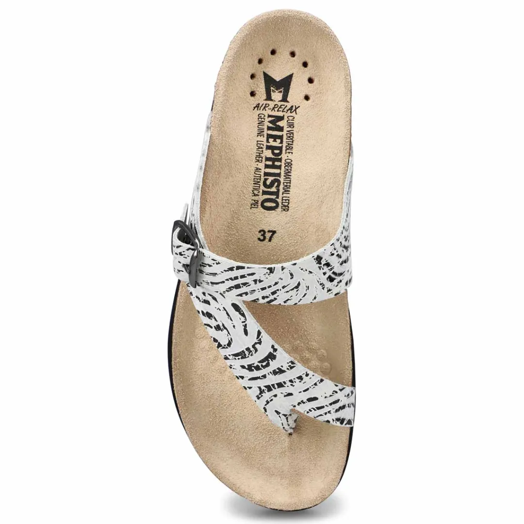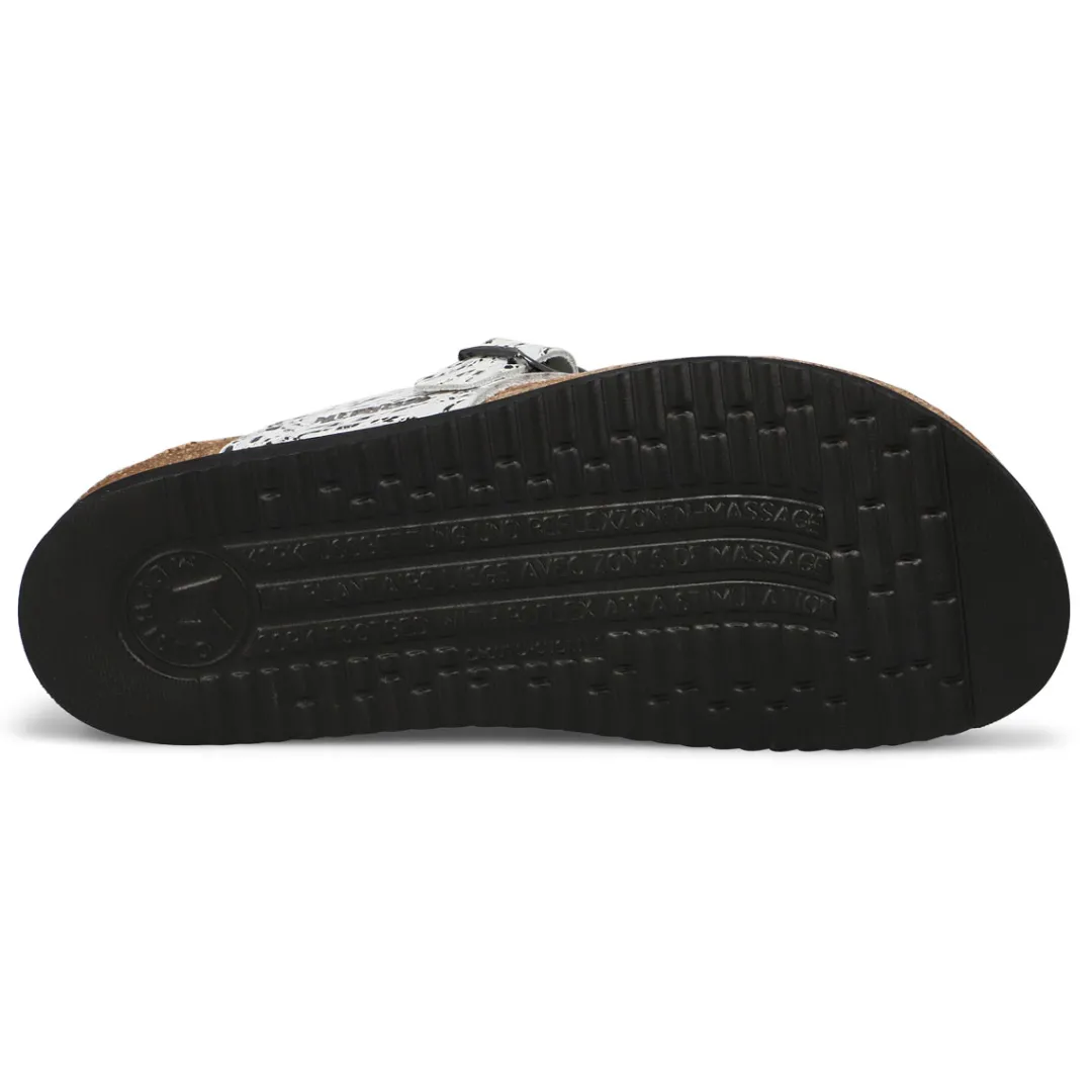 Not only is the Helen Toe Loop Silver Sandal from Mephisto stylish, it also provides the utmost in comfort. Its anatomically correct footbed, cork midsole and multi-layered footbed with Soft-Air-Technology make it hard for any other sandal to compete. adjustable instep strap for a secure fit. Thin toe post to help eliminate irritation. Anatomically correct suede covered cork footbed forms to your foot and provides improved support.