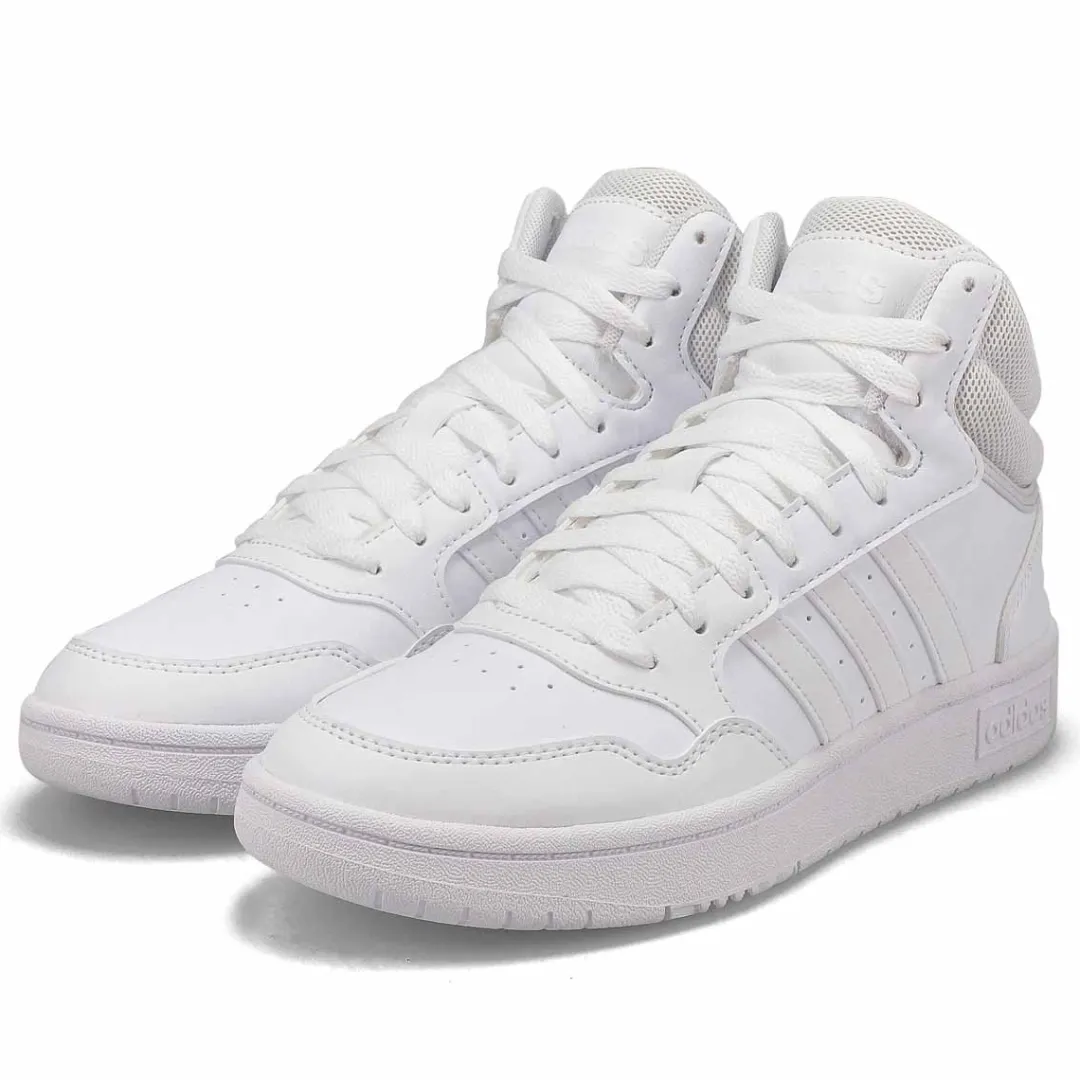 You will stand out from the crowd with classic Adidas style. The Hoops 3.0 Hi Top white /greyfashion sneakers from Adidas features a combination of synthetic and textile upper. Durable rubber outsole with a lightweight EVA sockliner for added cushioning. A durable hi top upper holds up to whatever comes your way.
