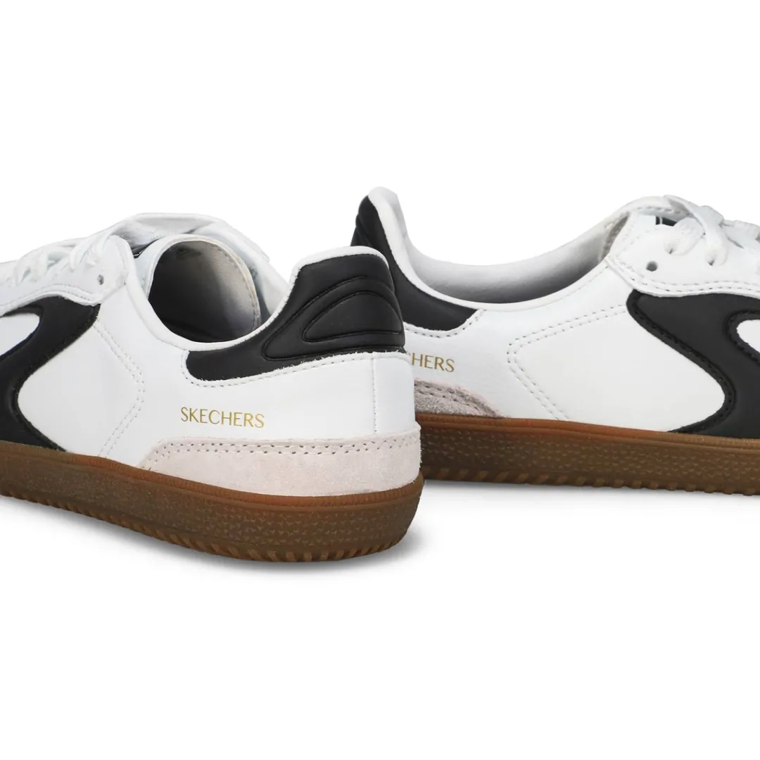 A modern classic meets fresh comfort in the Hotshot Kickoff navy blue lace up sneaker from Skechers. This lace-up court-style sneaker features a duraleather upper with suede overlays, contrast ‘S’ quarter logo, and a cushioned Skechers Air-Cooled Memory Foam insole. The Hotshot Kickoff sneaker is designed with a flexible traction rubber outsole.