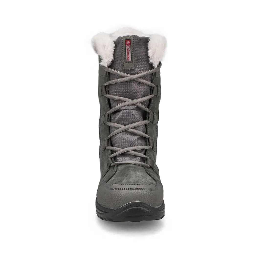 The Columbia Ice Maiden II dove boot is a sure-footed, waterproof-breathable lace-up winter boot with lightweight insulation, a cushioned insole for long-lasting comfort, and a luxe look. Take on the elements in style. Featuring a plush faux fur collar for extra warmth and an Omni-Grip outsole that provides all-terrain stability and traction with non-marking rubber.