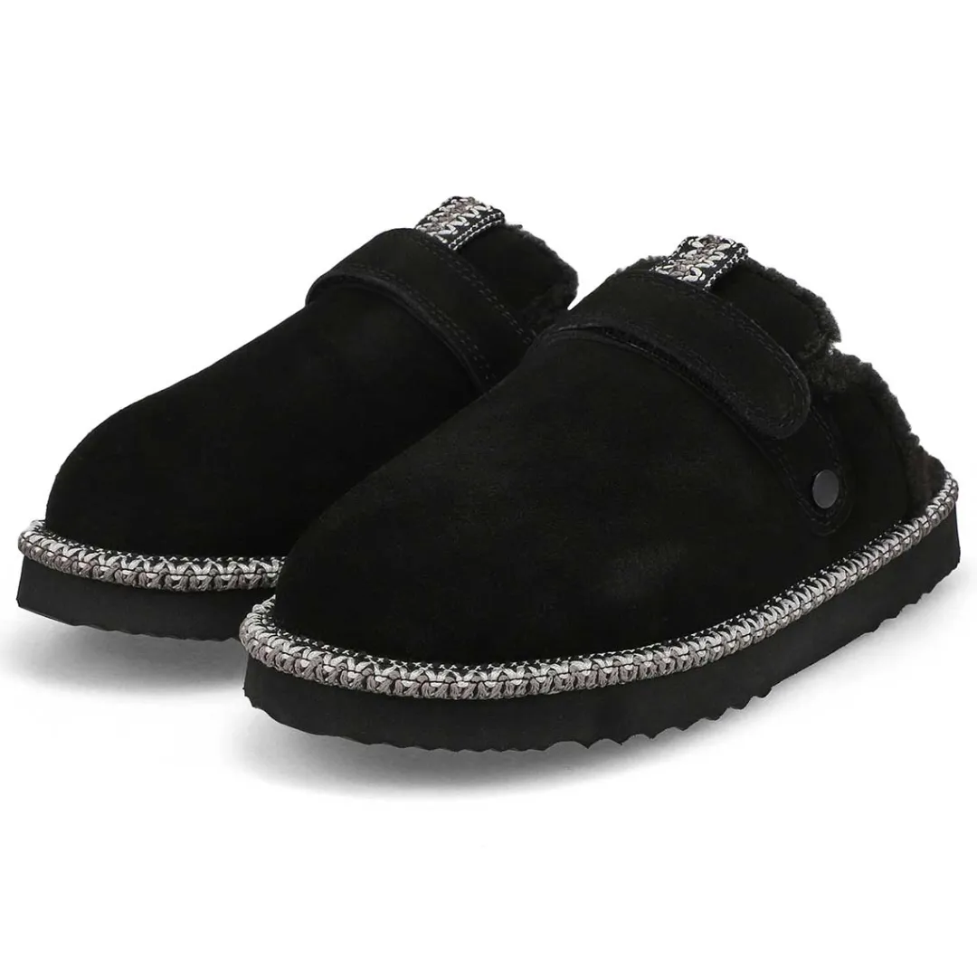 Warm and cozy are the perfect words to describe the Jessica open back latte slipper from SoftMoc is perfect for those cold nights and mornings. Featuring a beautiful suede upper with faux shearling for that cozy feeling. Memory foam footbed for added comfort. The Jessica open back slipper is design with a lightweight EVA outsole.