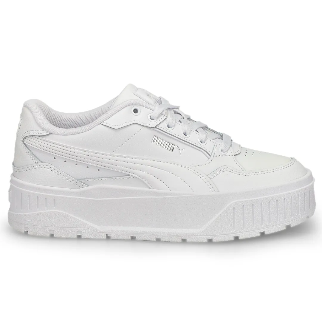 You will love the versatile style and comfort of the Karmen II Idol white/ black/ alpine snow platform sneaker from Puma. The upper is made of synthetic leather upper. The upper of this shoe is made with at least 20% recycled materials as a step toward a better future. Features a rubber outsole with diamond tread pattern provides ultimate grip.