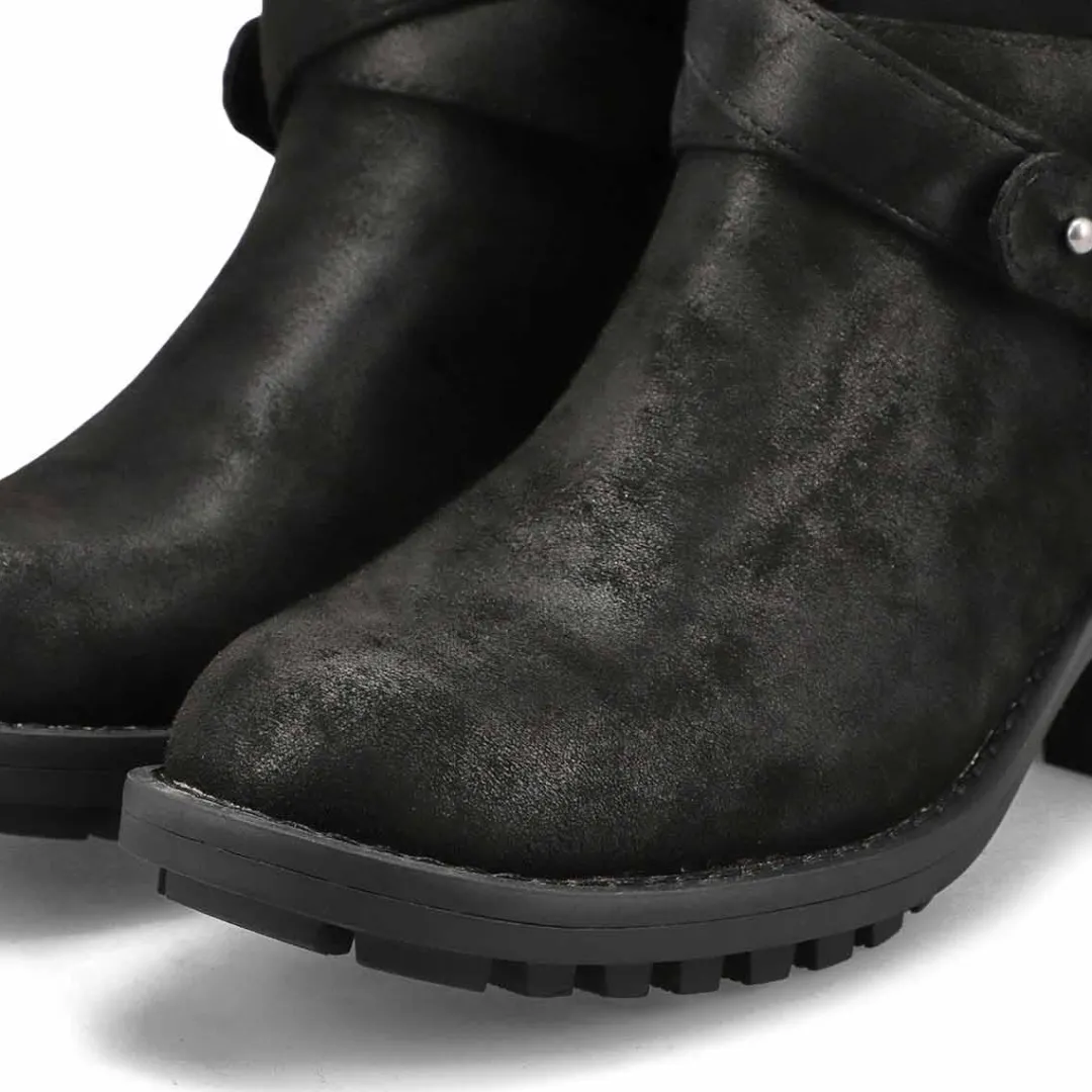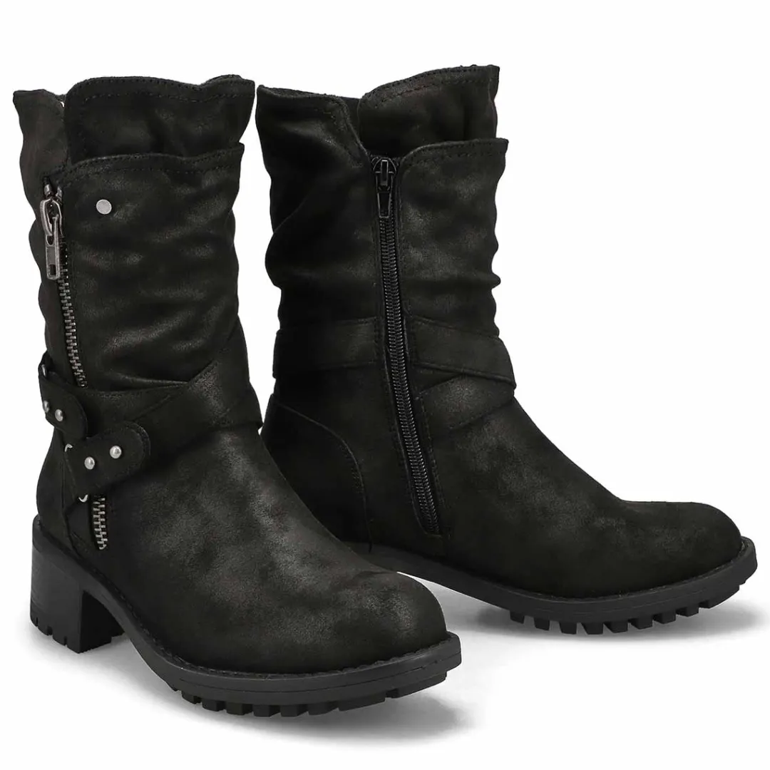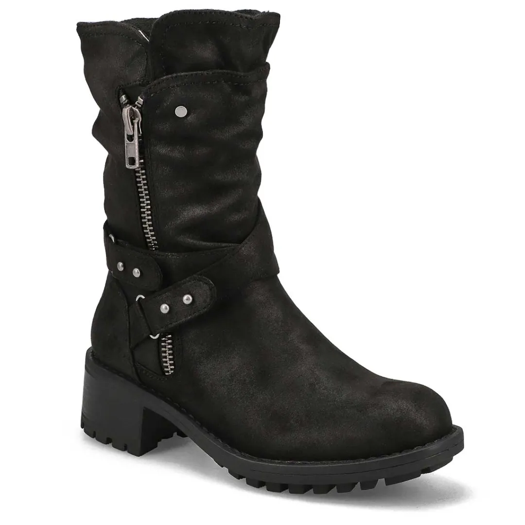 The Kassia Mid Calf wine combat boot from SoftMoc is the perfect boot choice whether your outfit is demanding a dressed up look or weekend casual. Featuring PU leather upper. A lightly cushioned footbed with lining helps create all day comfort. The Muse Riding boot is designed with a durable TPR outsole.