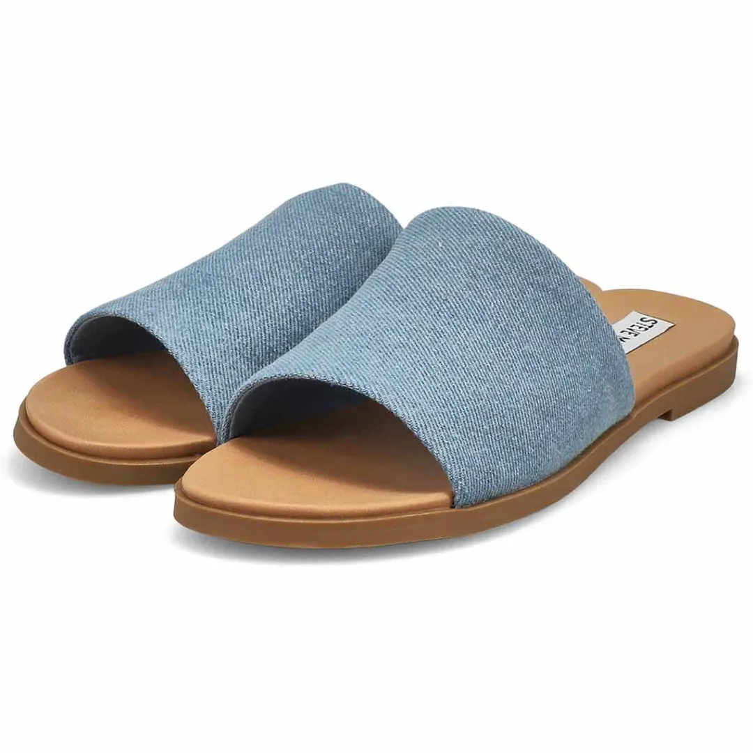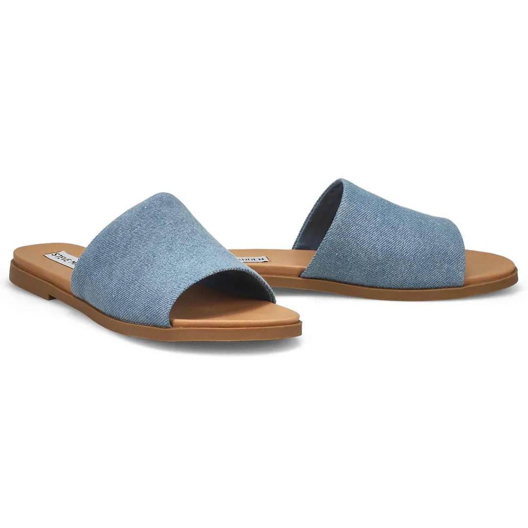 For versatility, style & comfort, Steve Madden has you covered with the Kastle denim slide sandal. Features a textile upper. Slip on construction for easy on /off. Padded footbed for all day comfort and a flexible man-made outsole for great durability. The Kastle slide is a must have for your wardrobe this season!