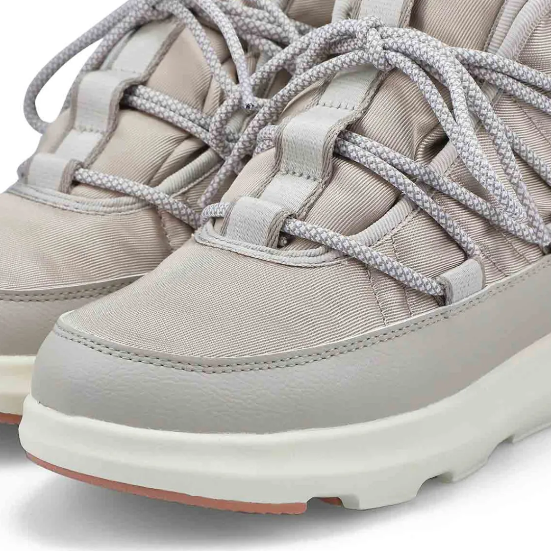 - Synthetic rubber outsole that uses deep treads with GripXT, for stability in snowy conditions