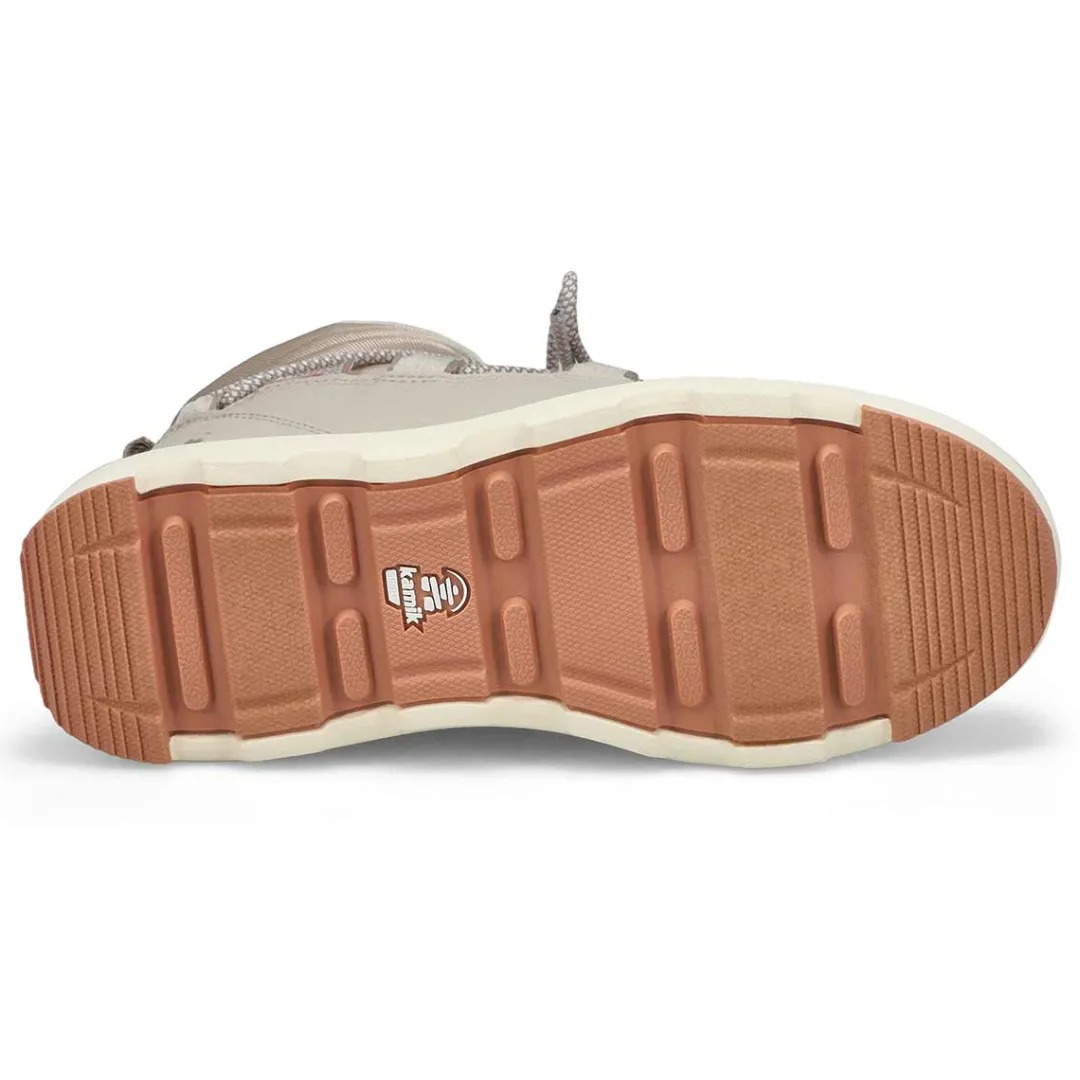Embrace a cold-weather lifestyle with the stylish yet super-warm Lea Lo black winter boot from Kamik. Featuring a removable CushyStep Everyday EVA foam footbed that brings soft cushioning and all-day comfort . A waterproof and durable vegan-friendly fabric to keep moisture out with a DriDefense membrane nylon and synthetic leather upper. Synthetic rubber outsole that uses deep treads with GripXT, for stability in snowy conditions.