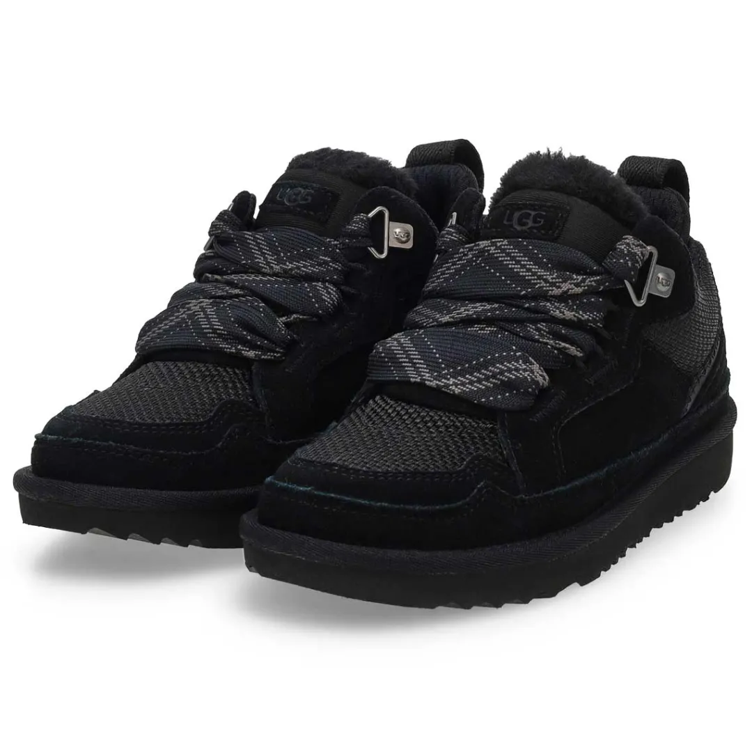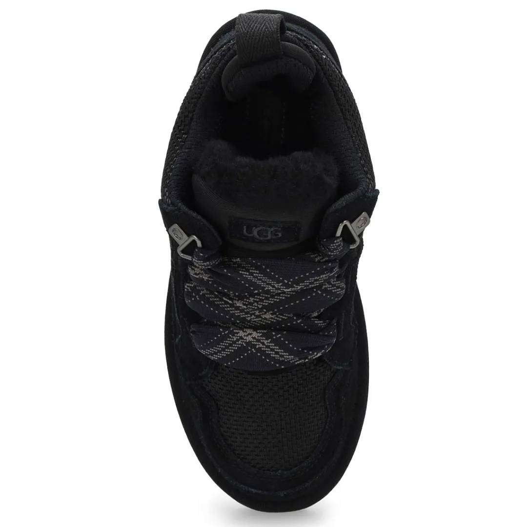 With the ease of a sneaker and the comfort of a slipper, the Lo Lowmel black fashion sneaker from UGG is all about impeccable vibes. The Lowmel family features a lower profile that begs for baggy jeans, ’90s jams, and seaside hangs. The upper features a textured mix of genuine suede and recycled ballistic canvas mesh that gives the quintessential sneaker style. On the bottom, you’ll find our springy sugarcane EVA outsole that offers signature UGG comfort and makes these feel extra light on the foot.