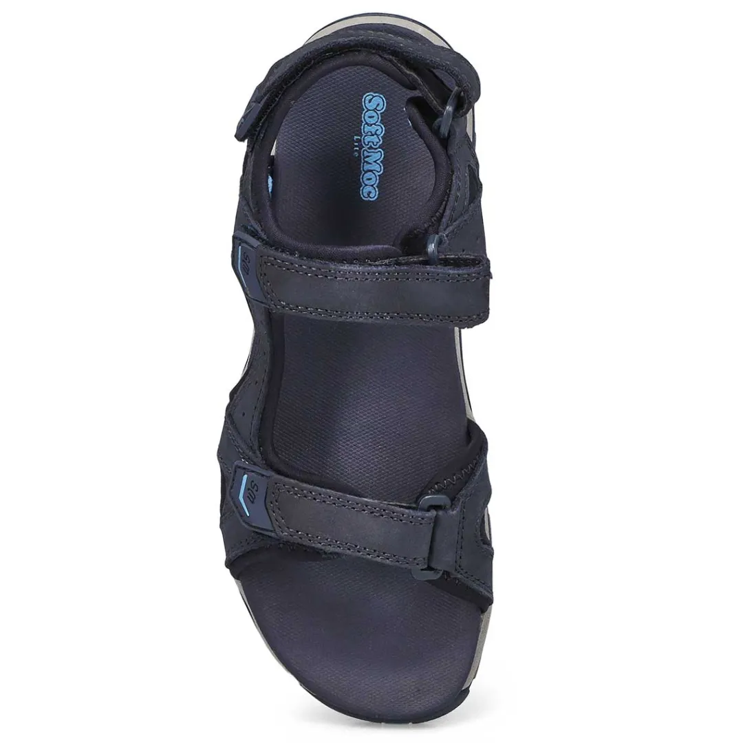 It’s your time in the sun so enjoy it in the Lucinda 2 navy sport sandal from SoftMoc. Featuring a combination nubuck and textile upper with a soft, Yogamat footbed for added cushioning and comfort. Soft fabric lining surrounds the foot in comfort whitlethe adjustable straps with hook and loop closure are perfect for a secure fit.