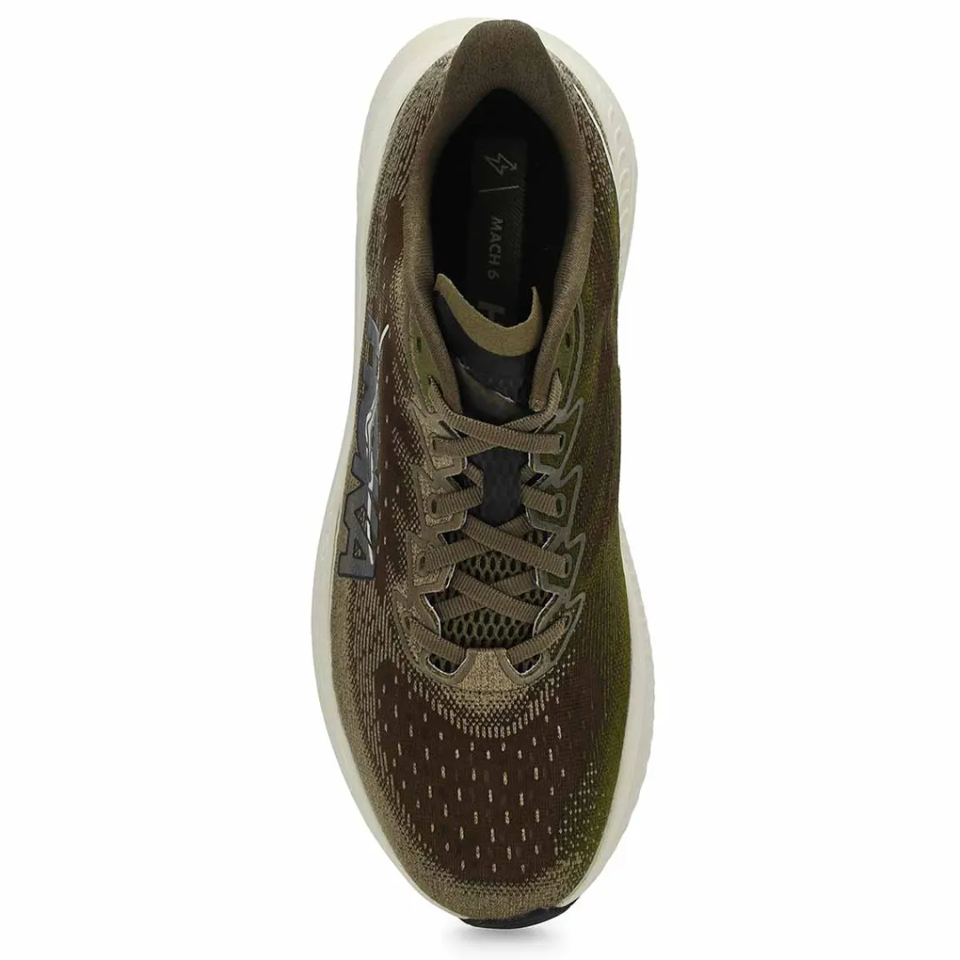 Behold Hoka’s lightest, most responsive Mach to date. The Mach 6 lace up Performance Sneaker from Hoka has been fine-tuned for extra energy return with a super critical foam midsole and updated for enhanced durability with strategic rubber coverage in the outsole. Implementing speed focused design details throughout, we’ve enlisted a new creel jacquard upper with zonal breathability and an internal gusset to deliver the foot-hugging comfort required to set your next PR.