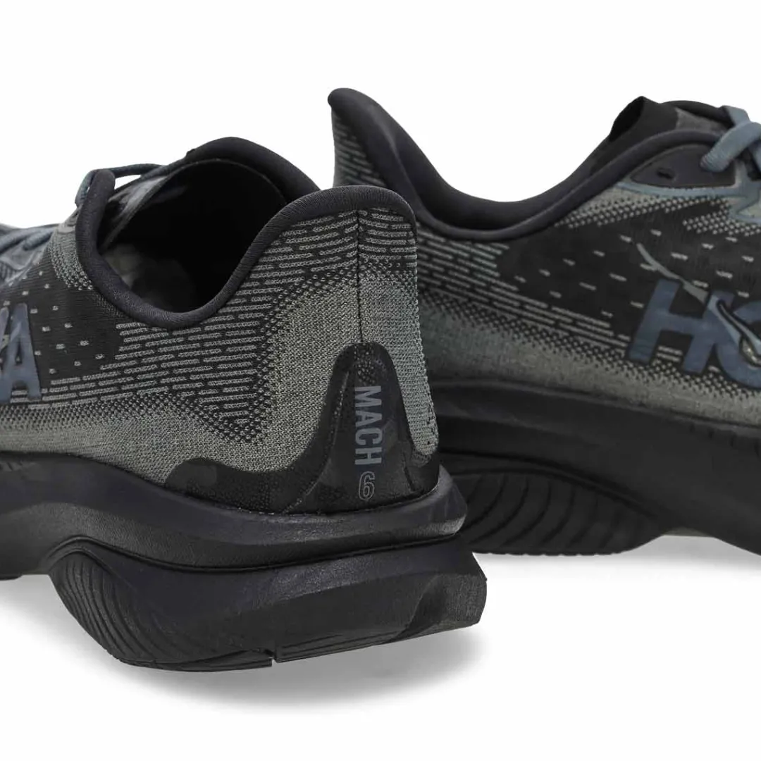 Behold Hoka’s lightest, most responsive Mach to date. The Mach 6 lace up Performance Sneaker from Hoka has been fine-tuned for extra energy return with a super critical foam midsole and updated for enhanced durability with strategic rubber coverage in the outsole. Implementing speed focused design details throughout, we’ve enlisted a new creel jacquard upper with zonal breathability and an internal gusset to deliver the foot-hugging comfort required to set your next PR.