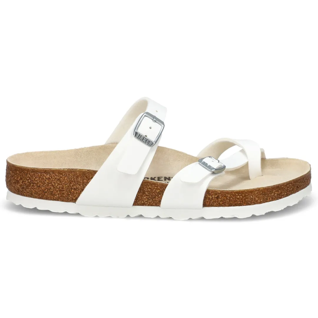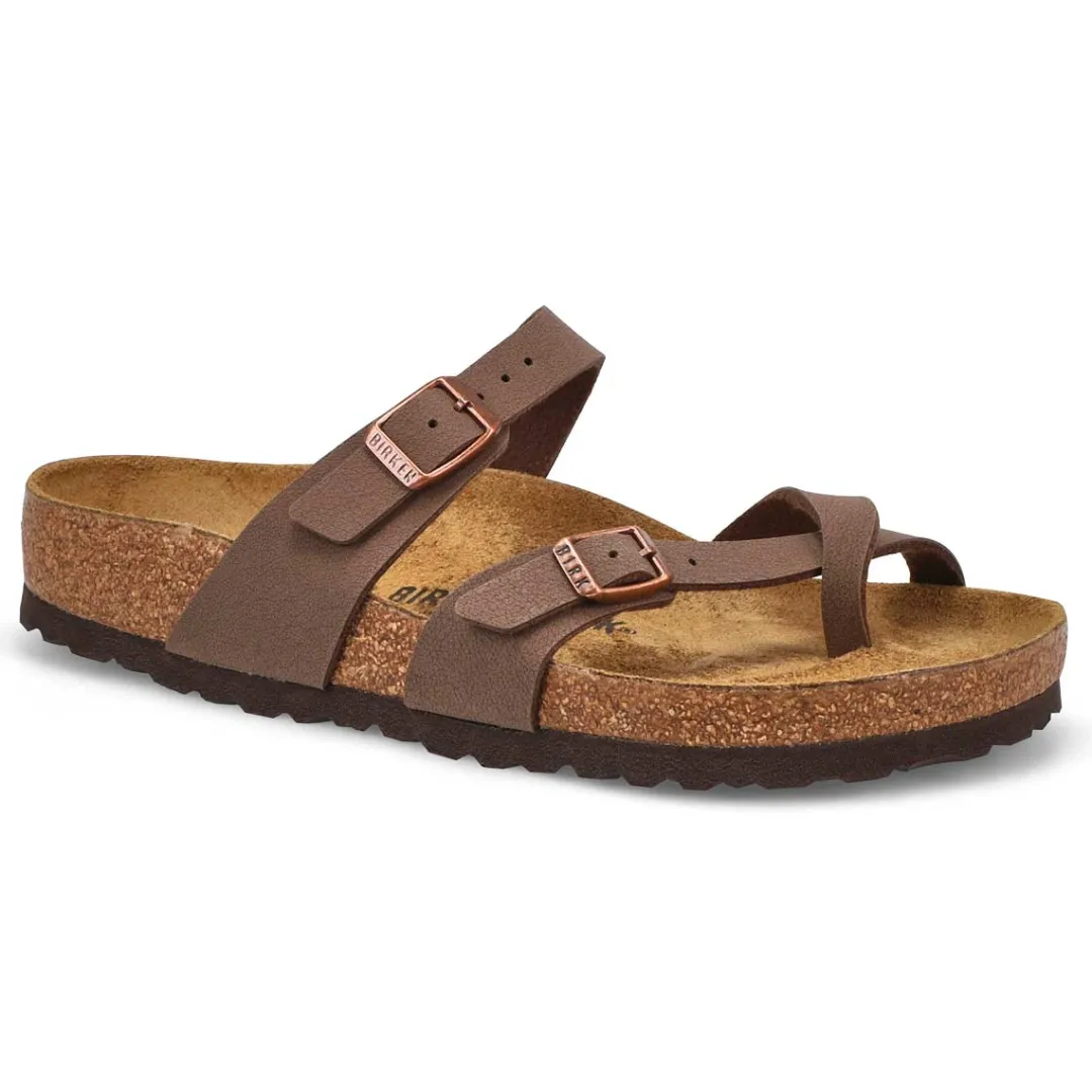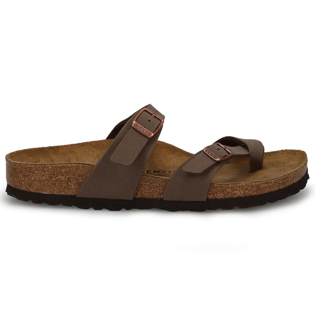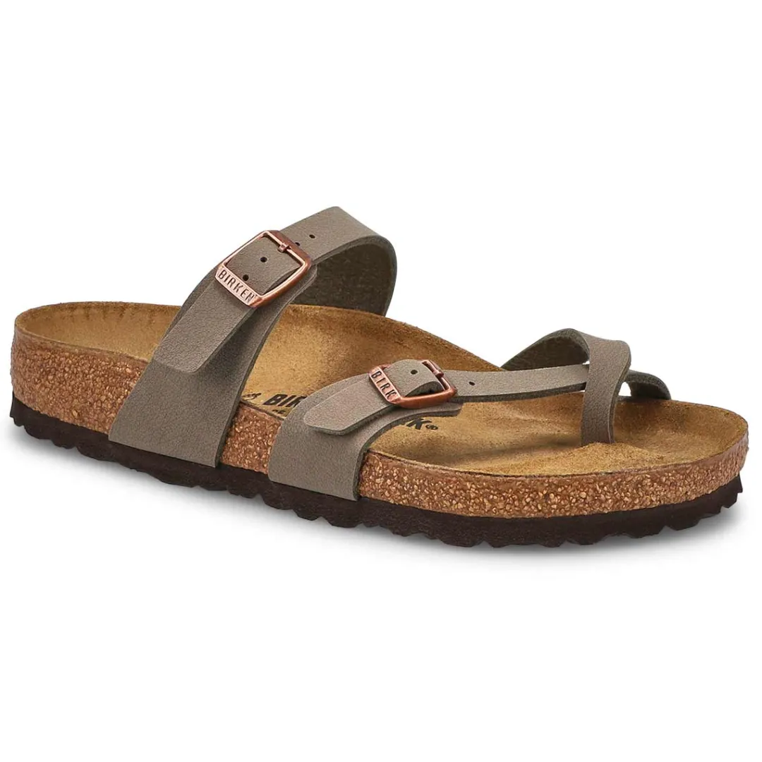 The Mayari birko-flor stone toe sleeve sandal with an orthotic footbed provides excellent arch support. Durable EVA outsole, cork footbed molds to each individual foot to provide a custom fit. This Birkenstock sandal is a genuine classic, emphasizing the handcrafted and natural look of stylish sandals. A comfort legend and a fashion staple.