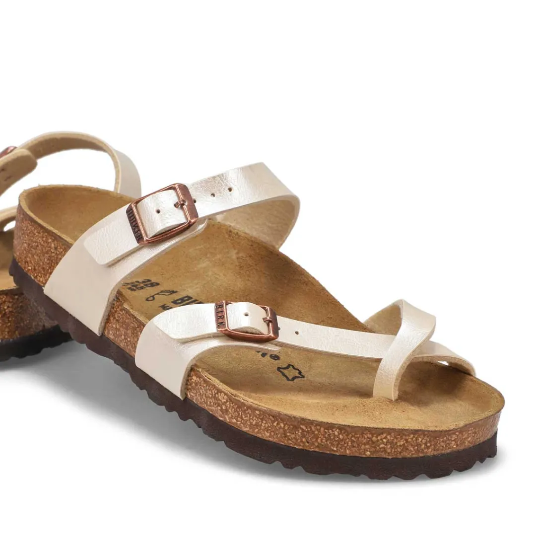 The Mayari Oily Leather black toe sleeve sandal with an orthotic footbed provides excellent arch support. Durable EVA outsole, cork footbed molds to each individual foot to provide a custom fit. This Birkenstock sandal is a genuine classic, emphasizing the handcrafted and natural look of stylish sandals. A comfort legend and a fashion staple.