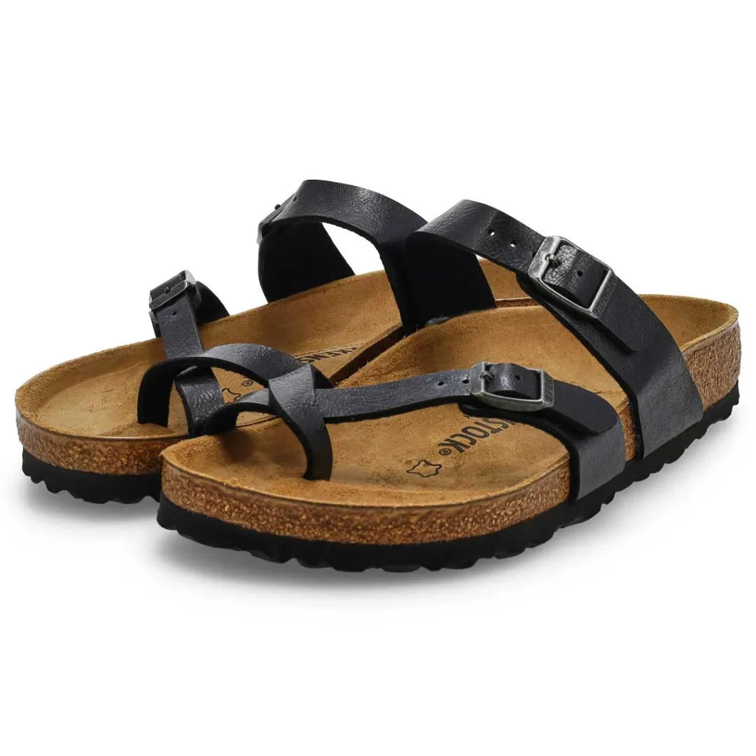 The Mayari birko-flor upper from Birkenstock with a contoured cork footbed conforms to the shape of your foot and features pronounced arch support. Durable EVA outsole, cork footbed molds to each individual foot to provide a custom fit. This Birkenstock sandal is a genuine classic, emphasizing the handcrafted and natural look of stylish sandals. A comfort legend and a fashion staple.