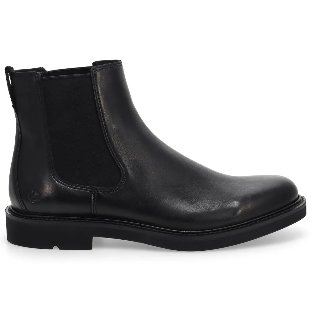 Meet the Metropole London black Chelsea Boot from Ecco, helping perfect your city stride. An upgrade to your dress casual repertoire that’s crafted with an extra bit of width and a supremely comfortable Fluidform sole to keep you in step all day. Crafted from premium Ecco leather. Classic elastic gore panel for easy on-and-off.