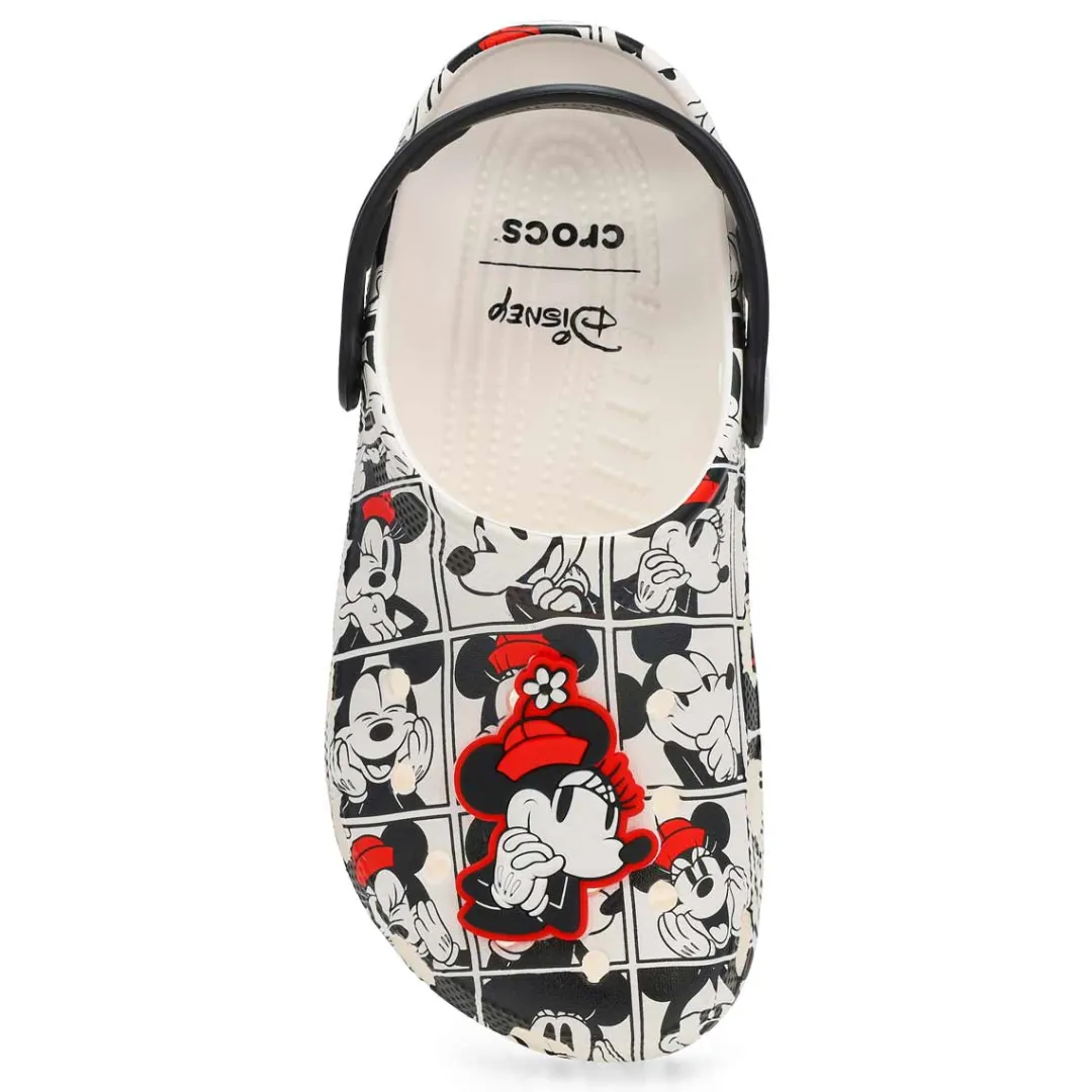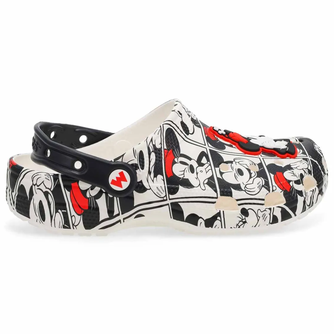 Bring out your playful side in this colorful version of the Classic Clog. A colorful graphic of Mickey and friends covers the clog and includes a collection of enamel Jibbitz charms featuring Pluto, Daisy, Goofy, and more! Plus, there’s more room to add your own personalization. They’re sure to put a smile on your face.
