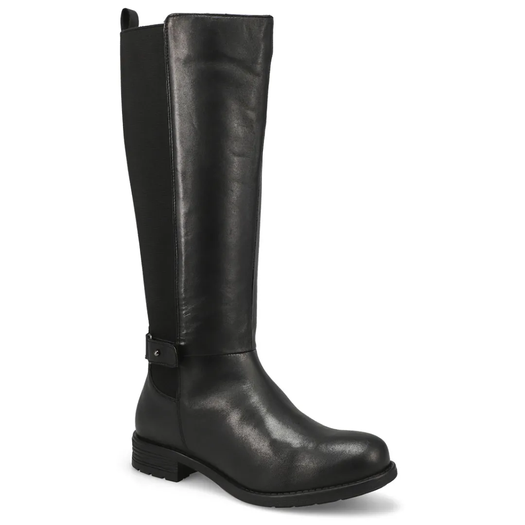 The Omega 2 Tall Riding black boot from Maddison by SoftMoc is the perfect boot choice whether your outfit is demanding a dressed up look or weekend casual. Featuring a genuine leather upper with elastic goring for a great fit. A lightly cushioned footbed with PU/Lycra lining helps create all day comfort. The Omega 2 Tall Riding boot is designed with a durable TPR outsole.