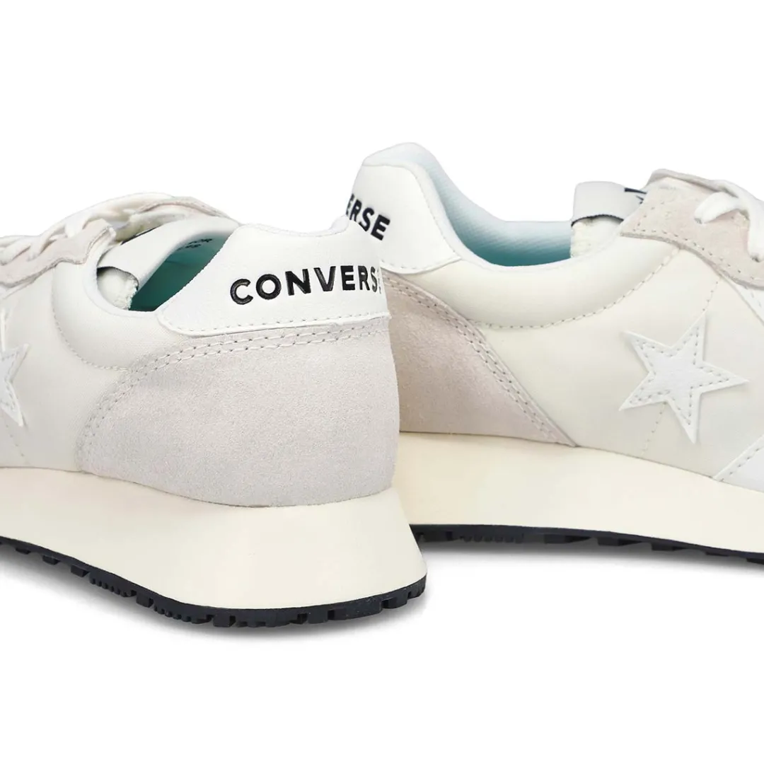 Inspired by your favorite ’80s running shoes, the Omega Trainer Egret/ Vintage White/ Black lace up sneaker from Converse delivers lightweight comfort in classic, timeless colors. With a design that’s both nostalgic and modern, it’s versatile enough to fit any dress code — from casual Fridays to weekend adventures. Star Chevron reps the Converse legacy of sport and street style.